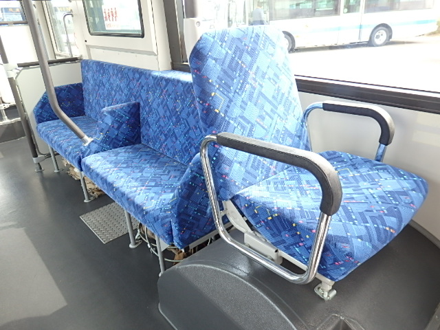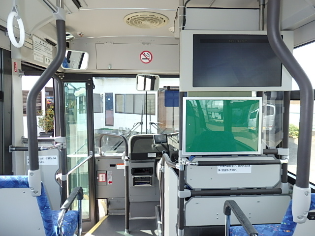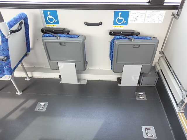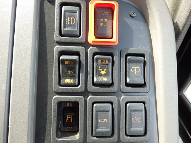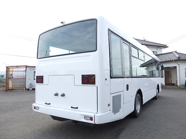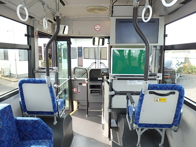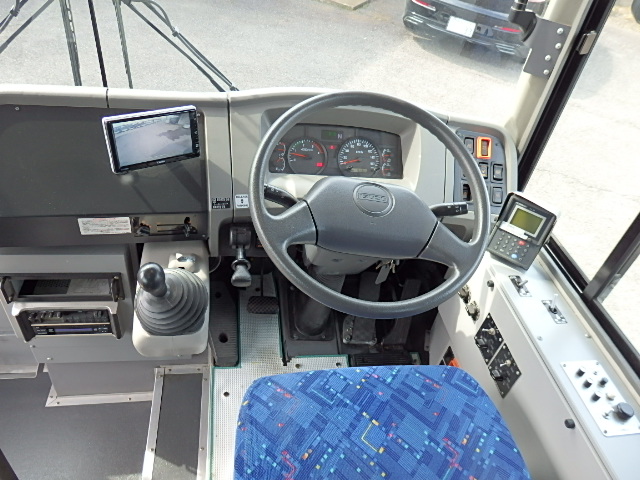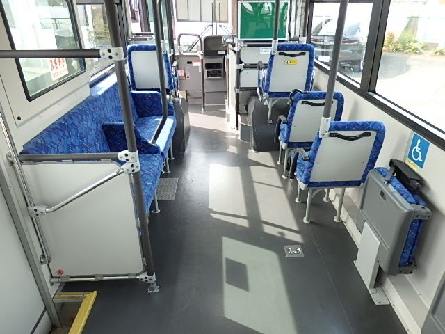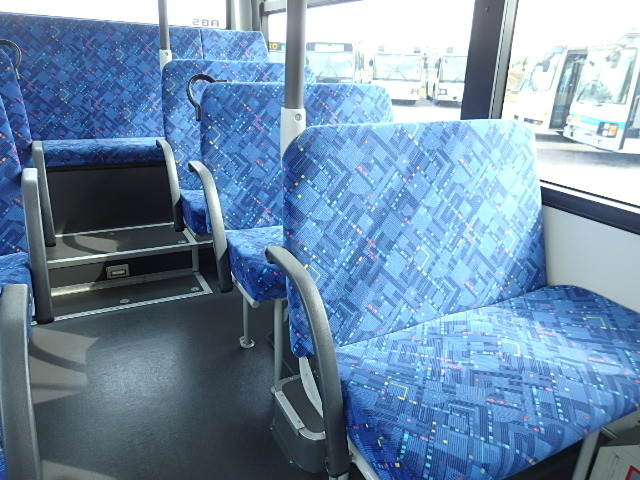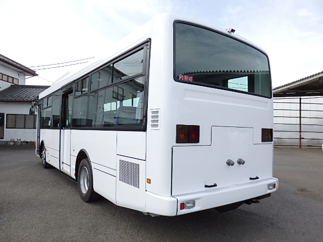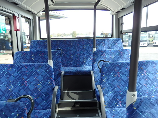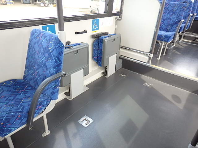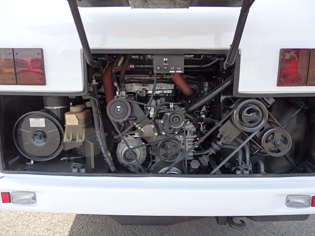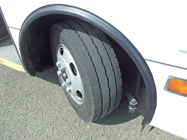 中型路線仕様・ワンステップ式 シフト・6MT ニーリング装置装着 定員・60名*(正座席・27名+D席・1名+立席・32名)*シートレイアウト・路線バス仕様 バリアーフリー適合車 車椅子用スロープ板(中扉・床部収納式) エアコン・DESNO製 ヒーター・温水式 降車ボタン・なし バックアイカメラ・カラー液晶モニター 換気扇・2基  タイヤ状態:夏用ラジアルタイヤ・6本・50% 塗装状態:白1色*(全塗装施工実施済)