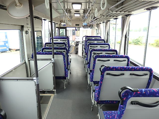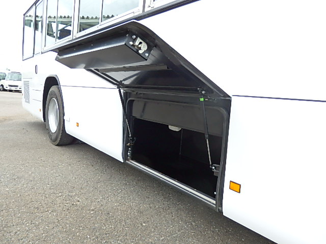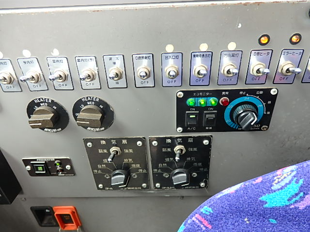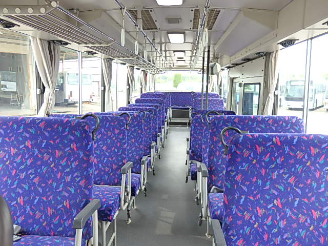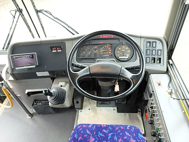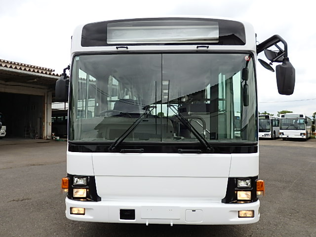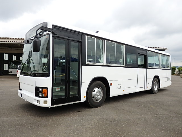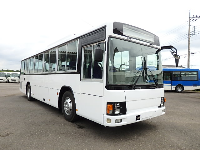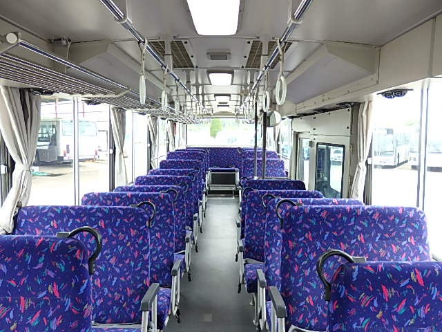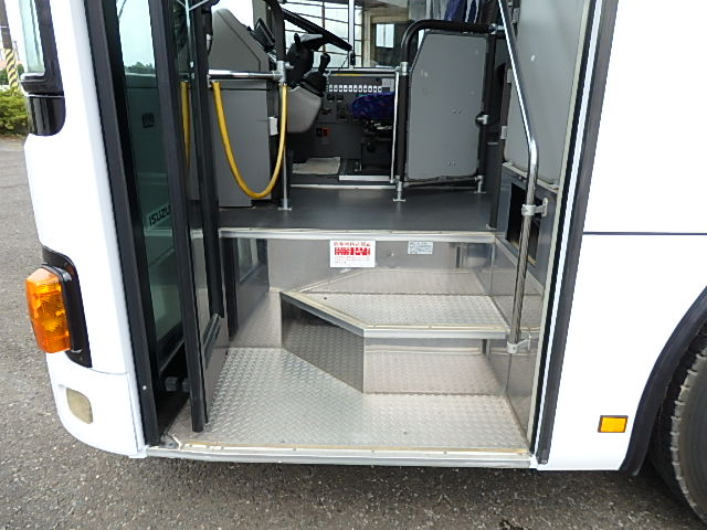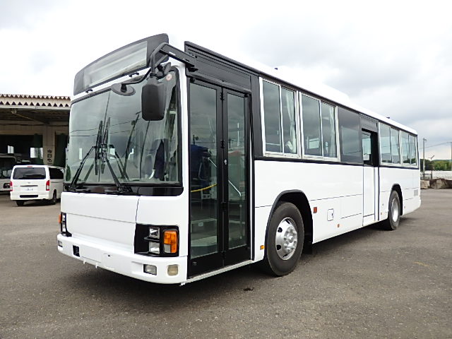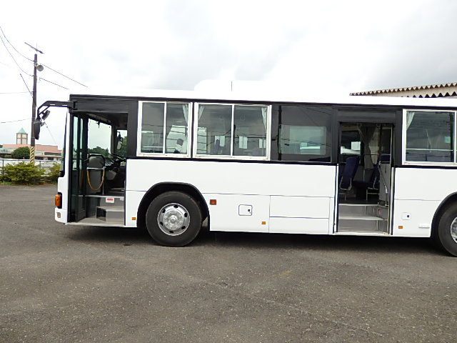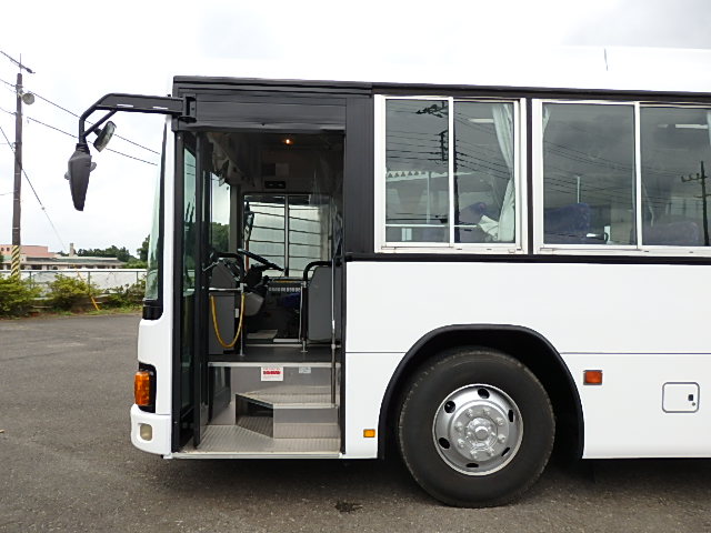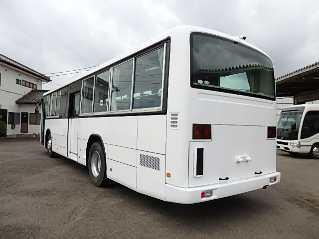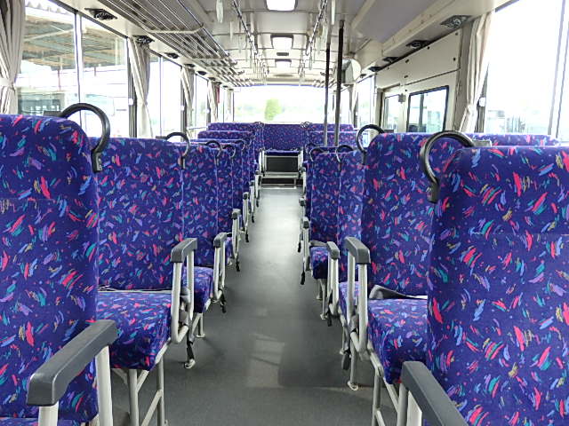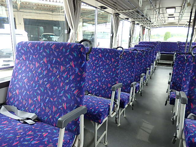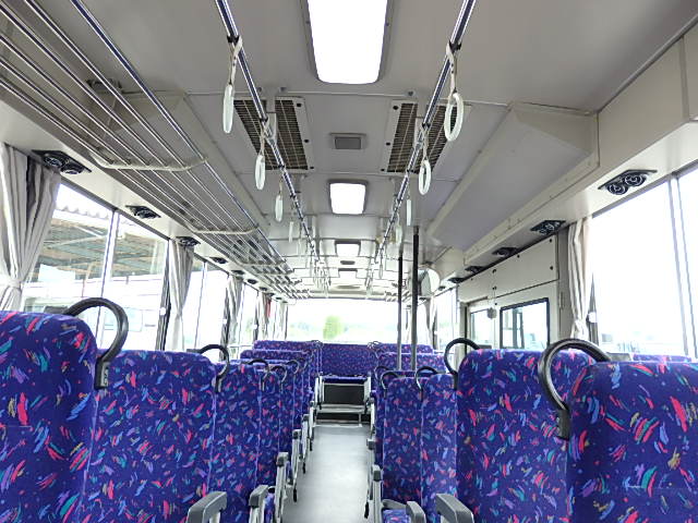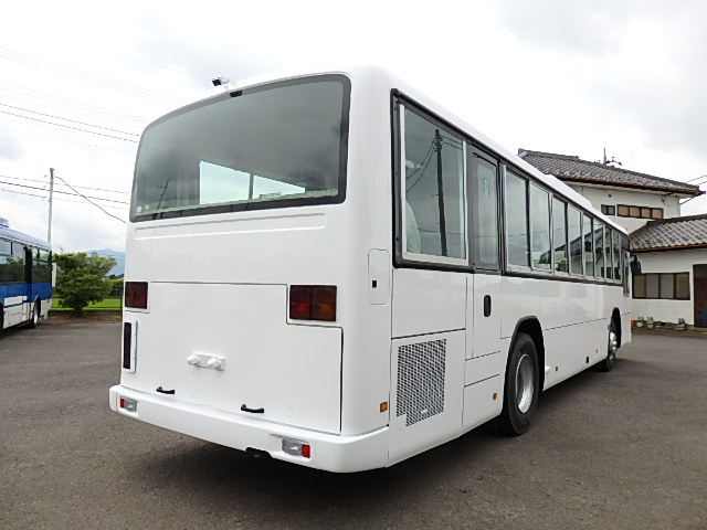 - 大型送迎仕様・ツーステップ式 シフト・6MT ABS装着 定員・78名*(正座席・43名+D席・1名+立席・34名) エアコン・DESNO製 ヒーター・寒冷地用プレヒーター(三国製) 降車ボタン バックアイカメラ・装着あり 換気扇・2基 バックミラー+運転席側面ガラス+出入口扉・ヒーター装着 タイヤ状態:冬用スタッドレスタイヤ・6本・50% 塗装状態:全塗装実施済・白1色