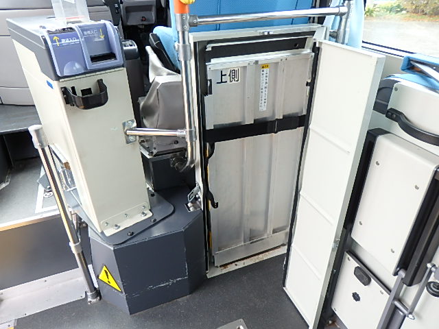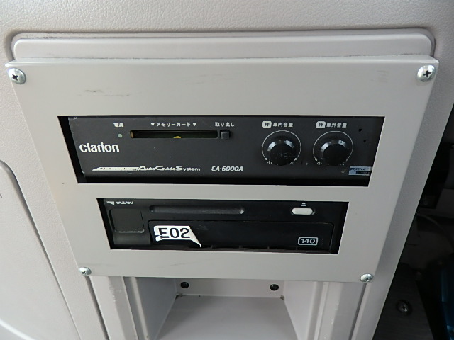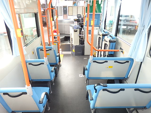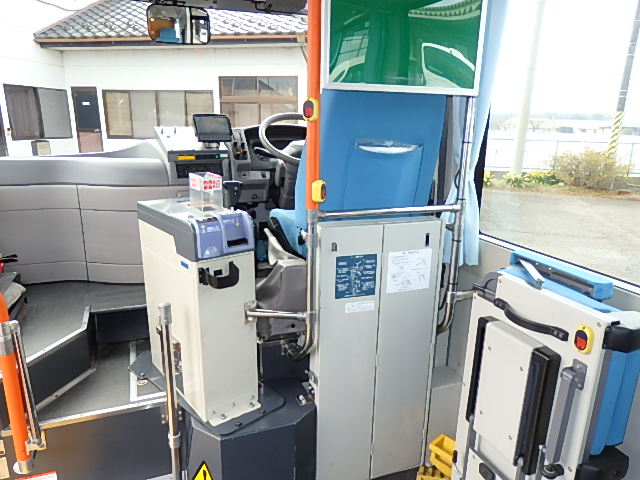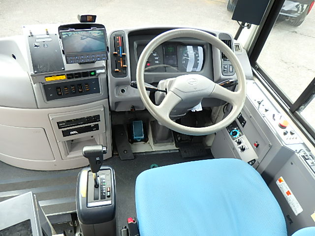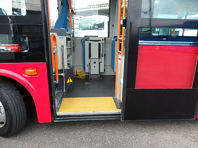 - ノンステップ式 路線バス仕様 前扉 バリアフリー適合 シフト・AT(アイシン製) LED方向幕・3方向(クラリオン製) 放送装置・クラリオン製 車椅子用スロープ板装備 ニーリング装置 降車ボタン LED降車灯 車外照射灯 エアコン・DENSO製 ヒーター・温水循環式 タイヤ状態:確認中・6本 塗装状態:旧事業者・指定色・現状