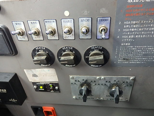 - 送迎仕様 TOP扉 シフト・6MT 13列シート 定員・89名*(正座席・53名+補助席・なし+D席・1名+立席・35名) モケット・ハイバック・固定シート シートレイアウト*(2人掛け×2人掛け) エアコン・直結式(DENSO製) ヒーター・寒冷地用プレヒーター装着(三国製) マイク機能付・ラジオアンプ バックアイカメラ・カラー液晶モニター タイヤ状態・MIXタイヤ・新品交換実施済・6本 塗装状態:全塗装実施済・白色・1色