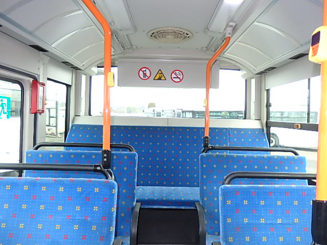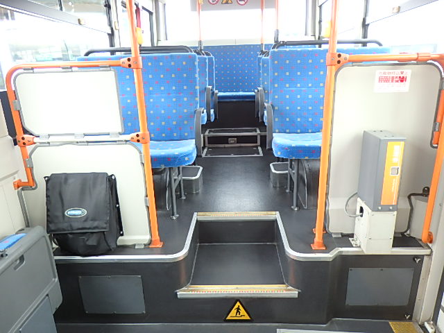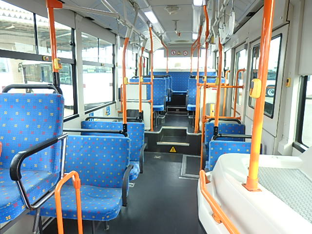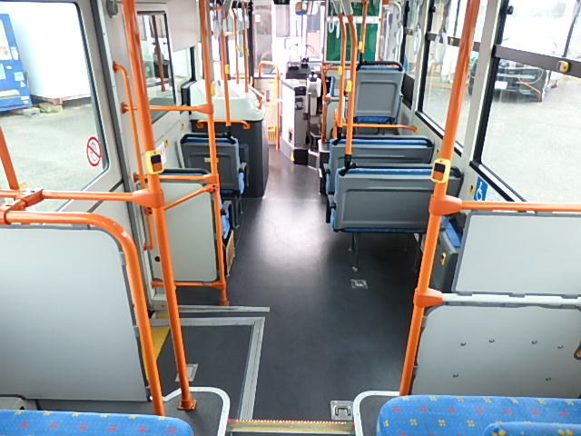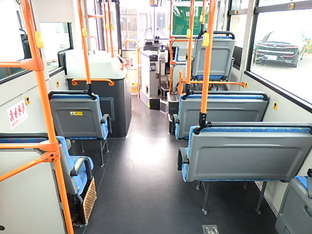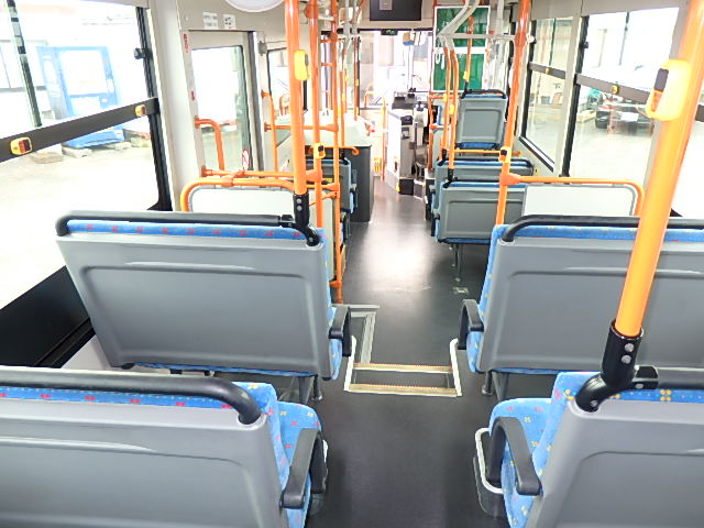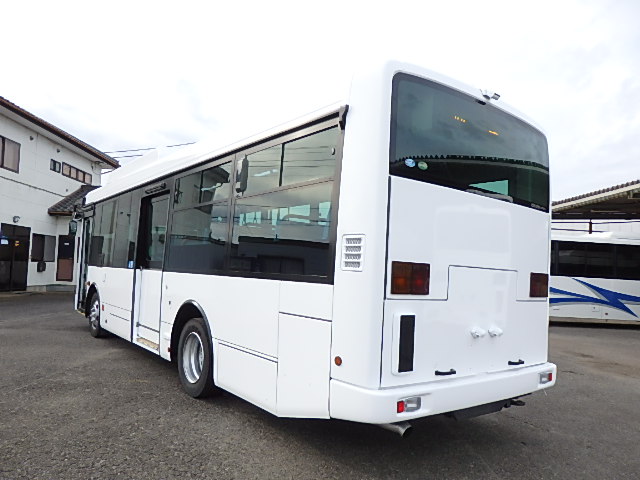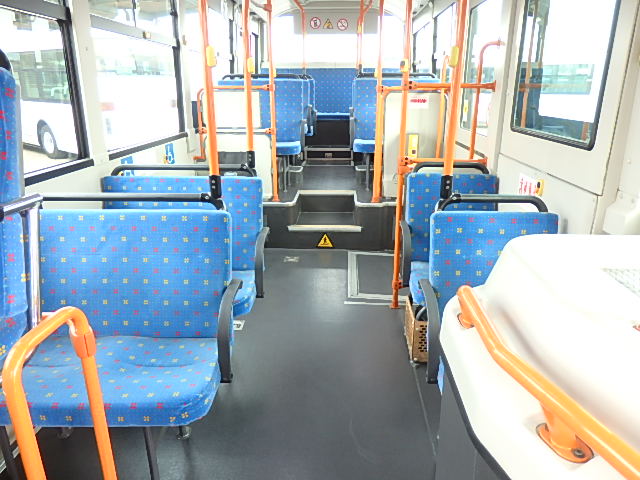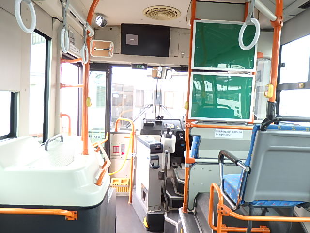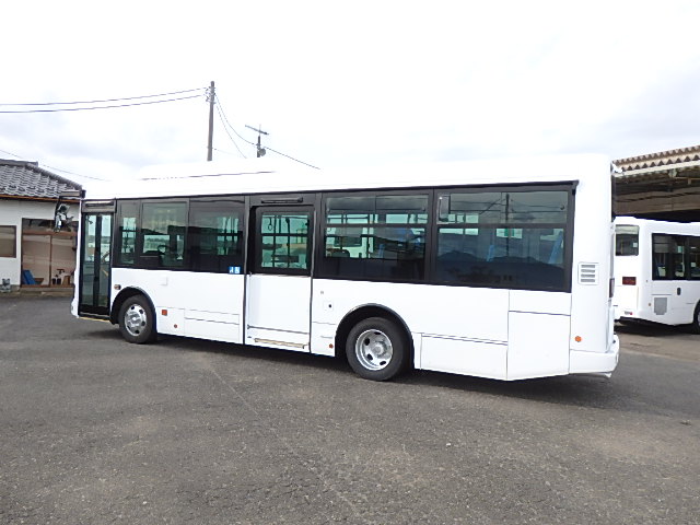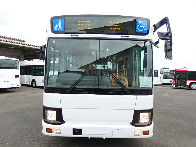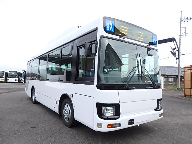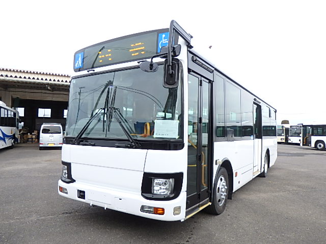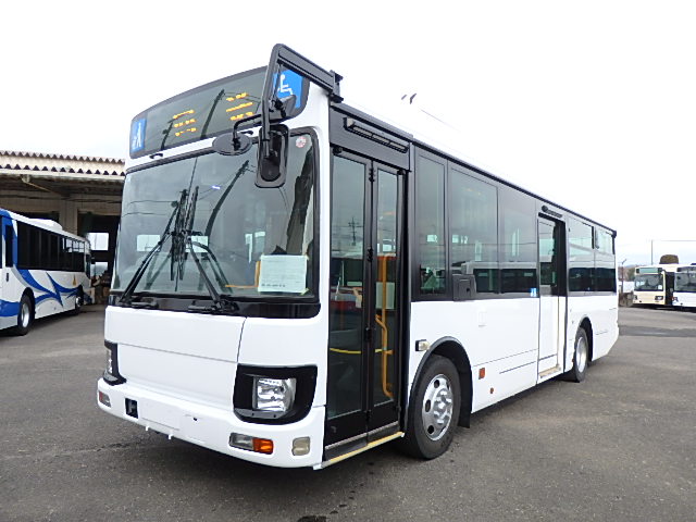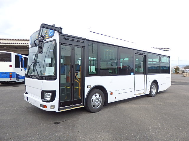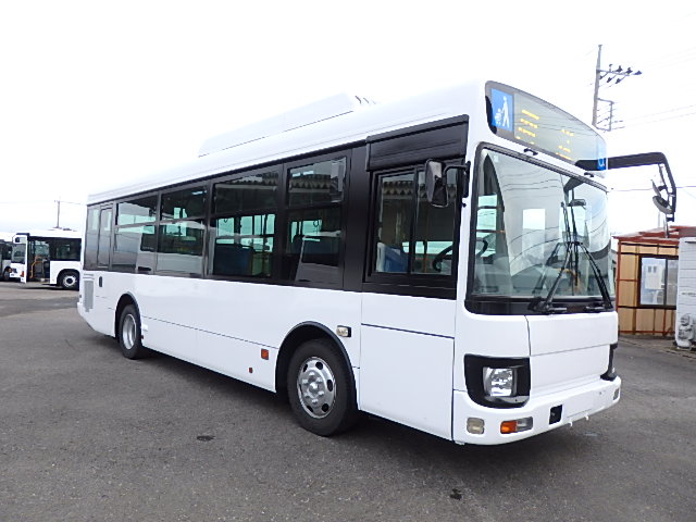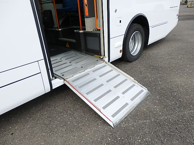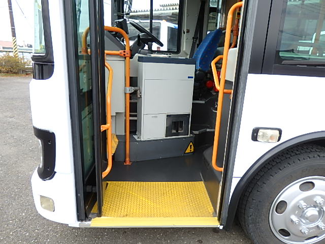 中型ノンステップ式・路線バス 郊外線仕様 シフト・AMT  ニーリング装置装着 定員・57名*(正座席・26名+D席・1名+立席・30名)*シートレイアウト・路線バス仕様 バリアーフリー適合車 車椅子用スロープ板(中扉・床部収納式) エアコン・DESNO製 ヒーター・温水式 降車ボタン・なし バックアイカメラ・カラー液晶モニター 換気扇・2基 タイヤ状態:冬用スタッドレスタイヤ・6本・50% 塗装状態:指定色・全塗装実施済・白1色