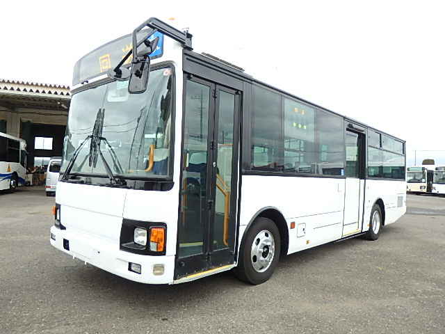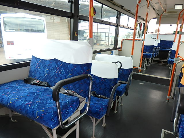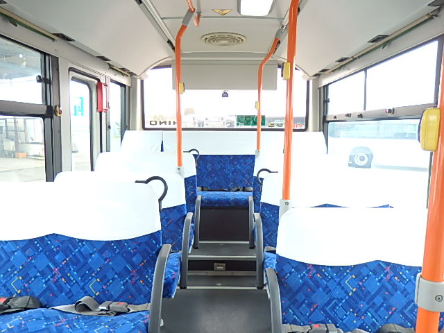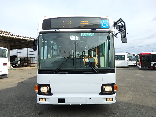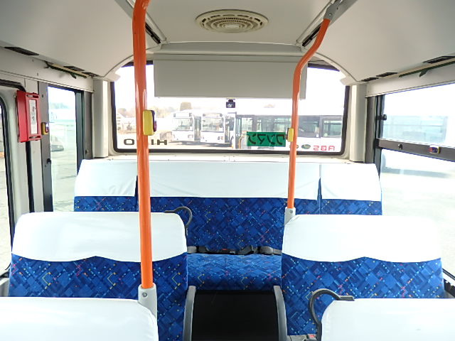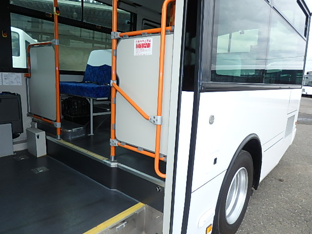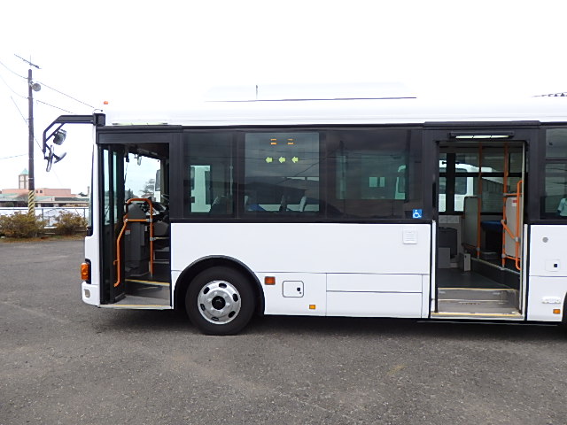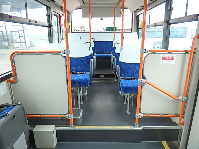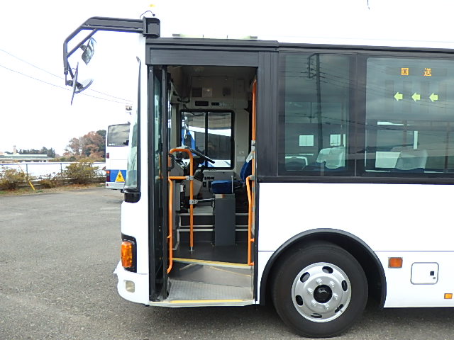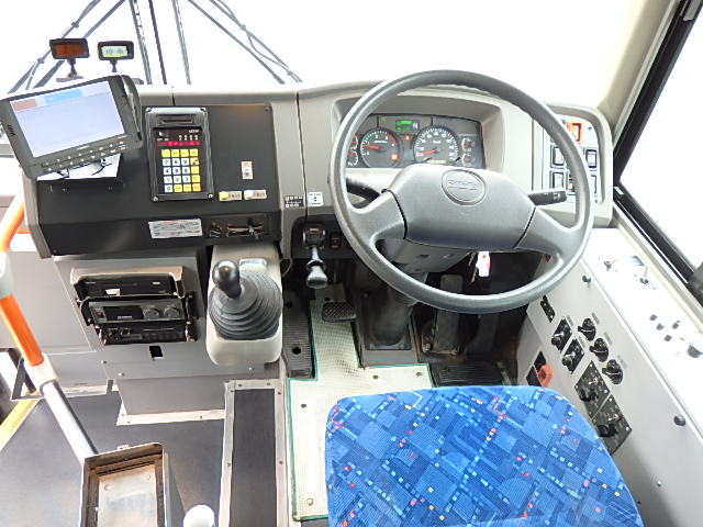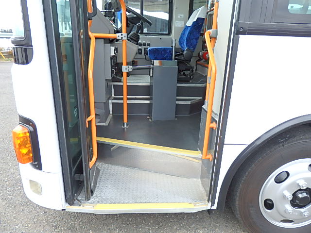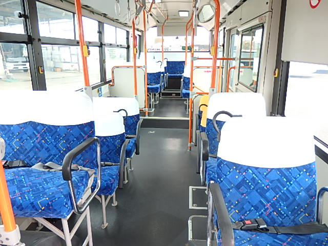 - 中型ノンステップ式・路線バス(バリアーフリー適合車) エンジン:4HK1 シフト・6MT ニーリング装置装着 車高調整機能 定員・60名*(正座席・29名+D席・1名+立席・30名)*シートレイアウト・路線バス仕様 *格納式シート・2列・1人掛け*(2名) 車椅子固定・1基分 車椅子用スロープ板(中扉・床部収納式) エアコン・DESNO製 ヒーター・寒冷地用プレヒーター装着(MIKUNI製) 降車ボタン・あり バックアイカメラ・カラー液晶モニター 換気扇・2基 「ミラーヒーター+D席側面ガラス+入口扉ガラス→ヒーター付」 ステップヒーター・装着あり タイヤ状態:夏用縦溝タイヤ・6本・30%*塗装状態:全塗装施工完了済・白1色