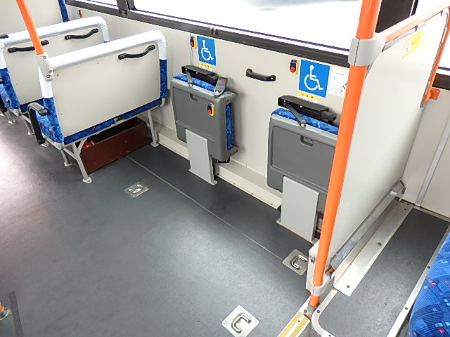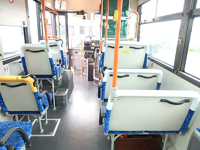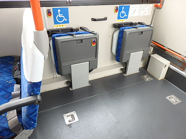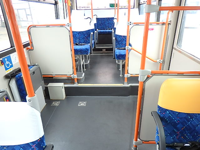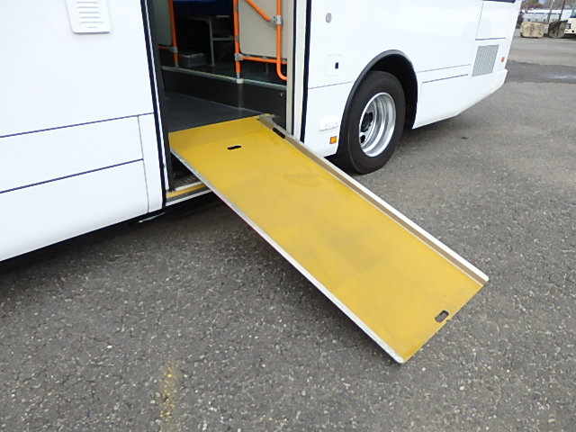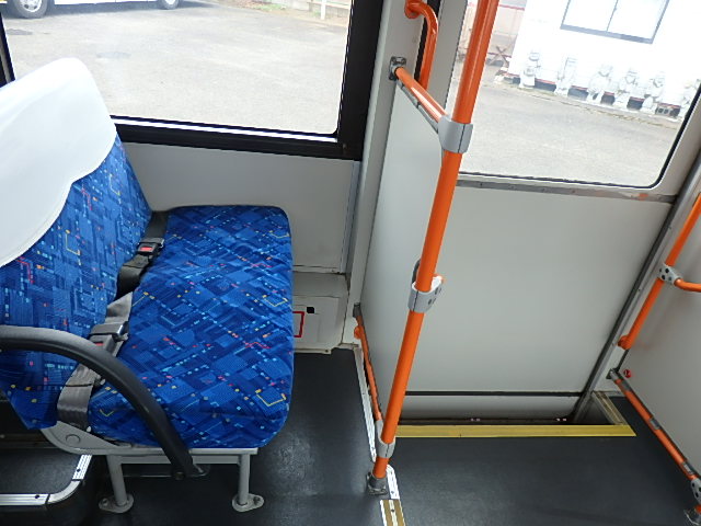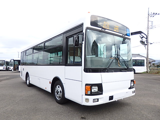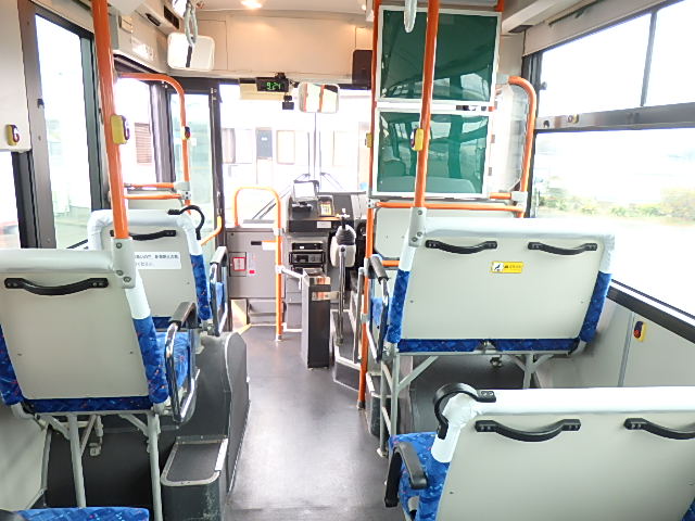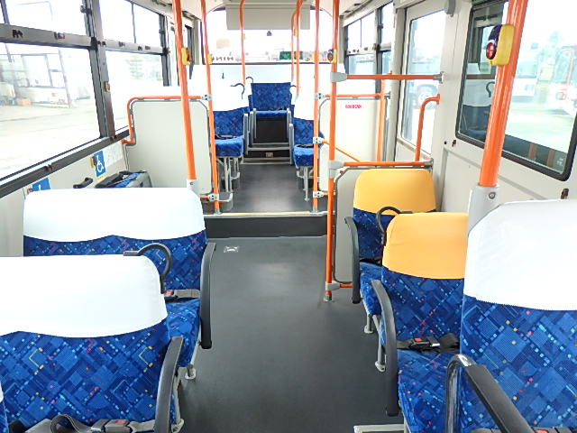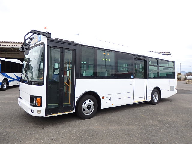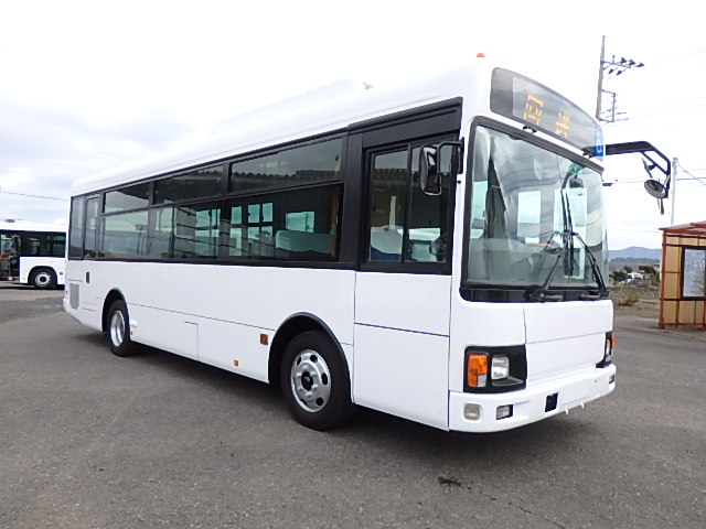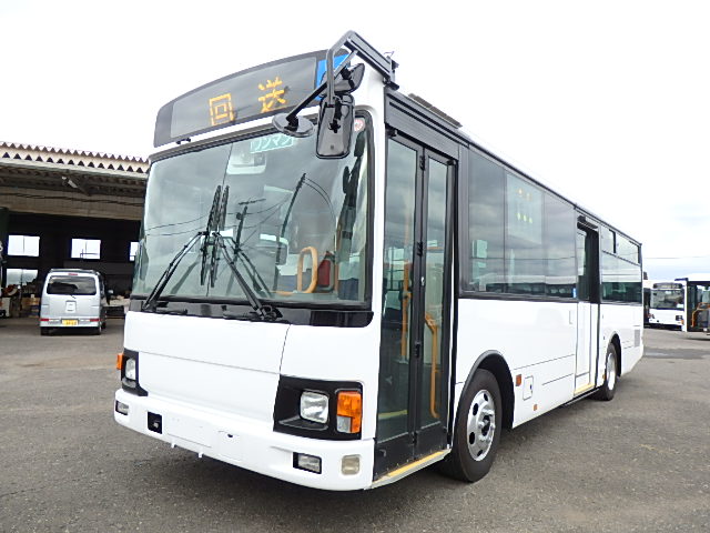 - 中型ノンステップ式・路線バス(バリアーフリー適合車) エンジン:4HK1 シフト・6MT ニーリング装置装着 車高調整機能 定員・60名*(正座席・29名+D席・1名+立席・30名)*シートレイアウト・路線バス仕様 *格納式シート・2列・1人掛け*(2名) 車椅子固定・1基分 車椅子用スロープ板(中扉・床部収納式) エアコン・DESNO製 ヒーター・寒冷地用プレヒーター装着(MIKUNI製) 降車ボタン・あり バックアイカメラ・カラー液晶モニター 換気扇・2基 「ミラーヒーター+D席側面ガラス+入口扉ガラス→ヒーター付」 ステップヒーター・装着あり タイヤ状態:夏用縦溝タイヤ・6本・30%*塗装状態:全塗装施工完了済・白1色