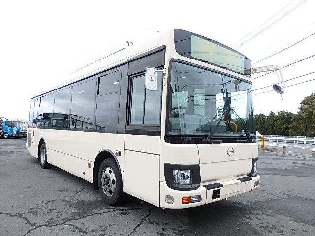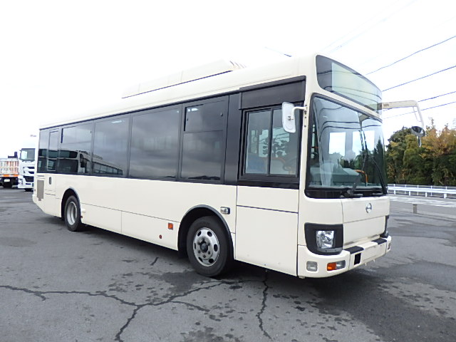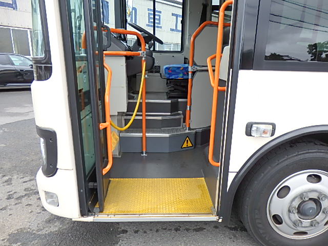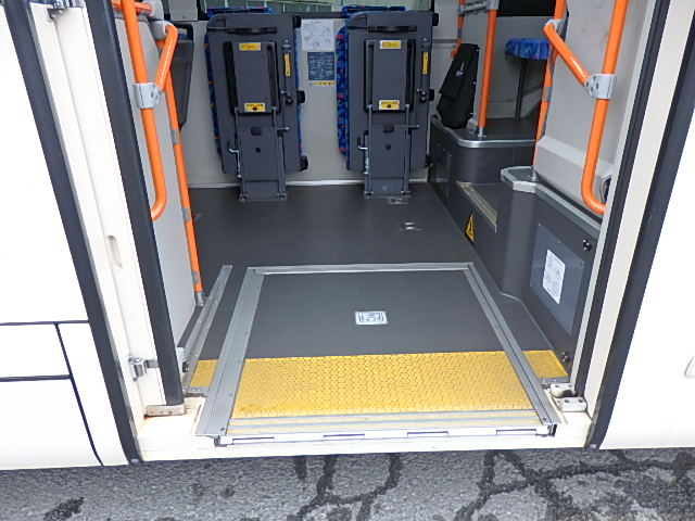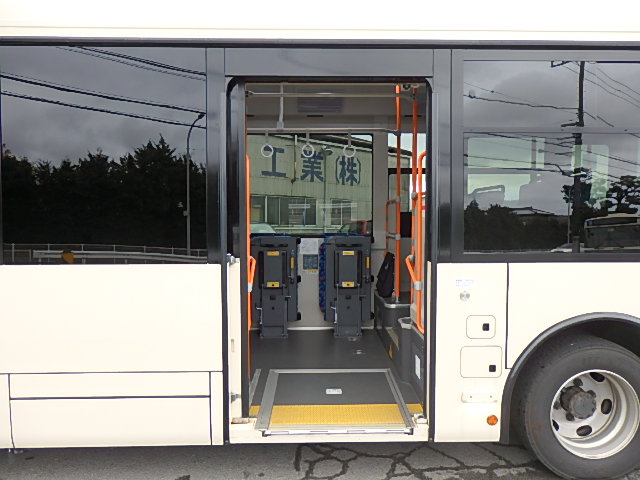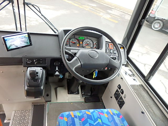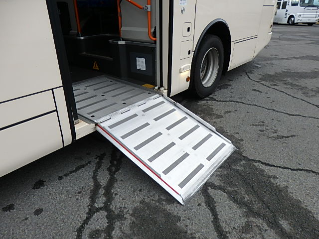 - 中型路線仕様・ノンステップ式 シフト・AMT アドブルー対応(尿素) ニーリング装置装着 定員・56名*(正座席・28名+D席・1名+立席・27名)*シートレイアウト・路線バス仕様 バリアーフリー適合車 車椅子用スロープ板(中扉・床部収納式) エアコン・DESNO製 ヒーター・温水式 降車ボタン・なし バックアイカメラ・カラー液晶モニター 換気扇・2基 タイヤ状態:冬用スタッドレスタイヤ・6本・50% 塗装状態:指定色・白1色・現状