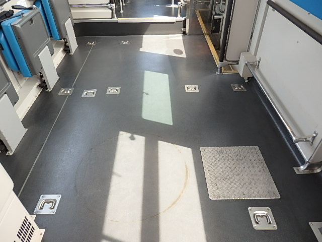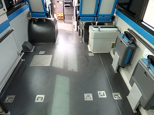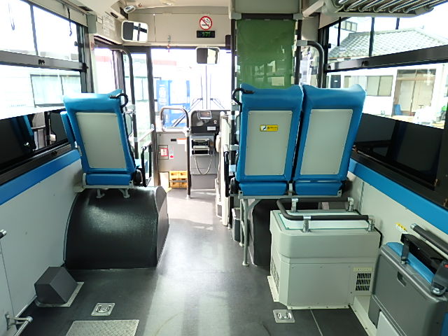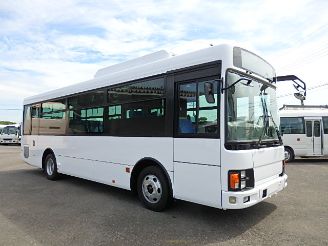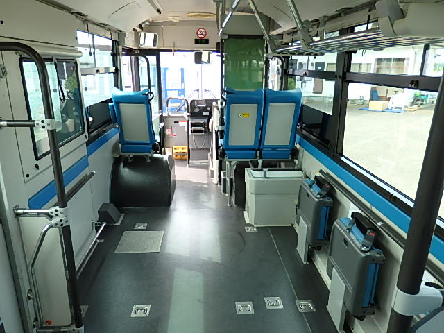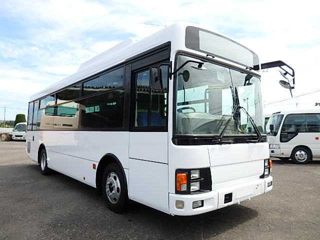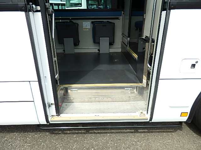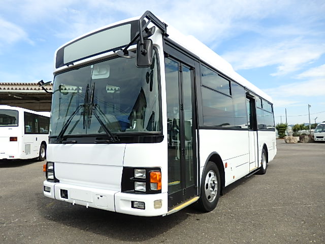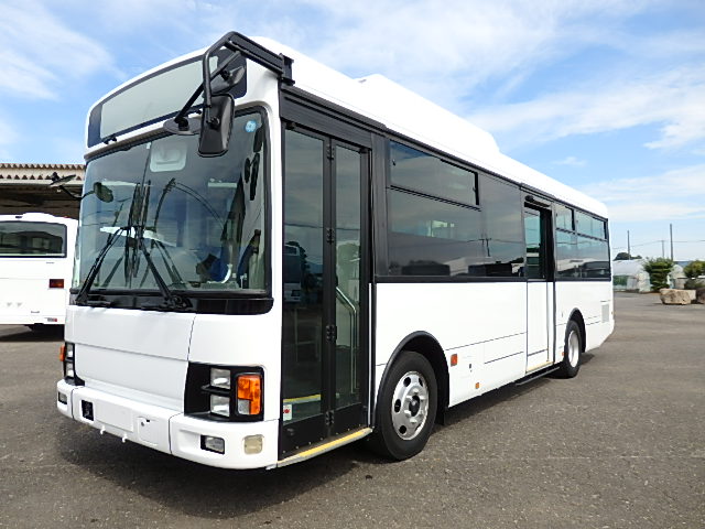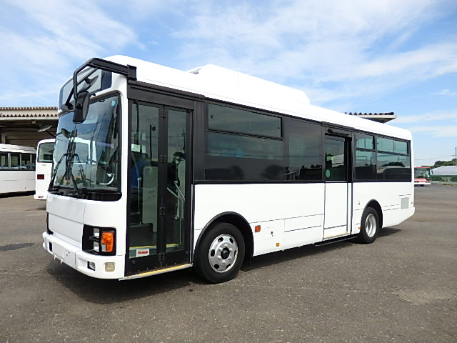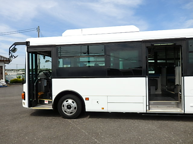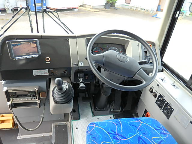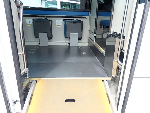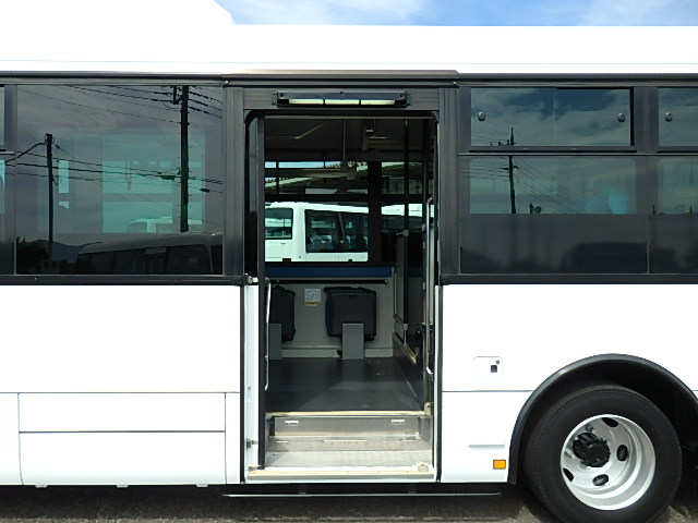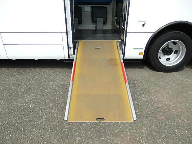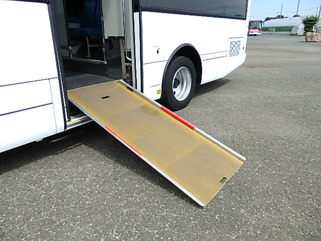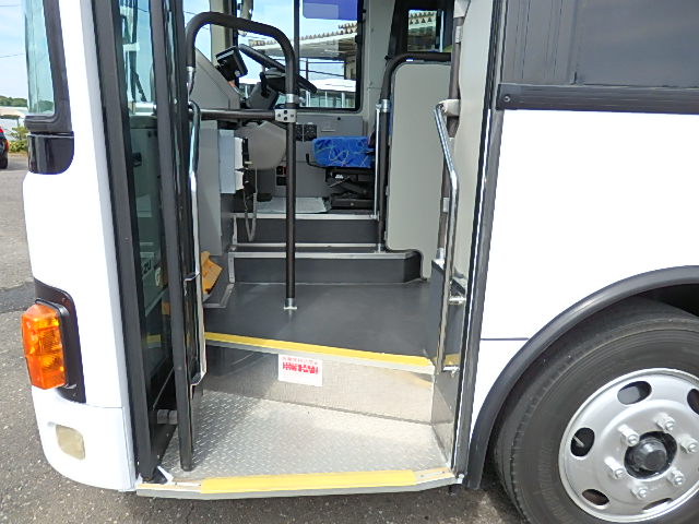 中型ワンステップ式 車椅子移動バス 前中扉 シフト・6MT  ニーリング装置装着 定員・23名*(正座席・21名+D席・1名+車椅子・1名)*車椅子固定・1基 バリアーフリー適合車 車椅子用スロープ板(中扉・床部収納式) エアコン・DESNO製 ヒーター・温水式 バックアイカメラ・カラー液晶モニター 換気扇・2基 タイヤ状態:夏用縦溝タイヤ・6本・10%*(交換必要) 塗装状態:全塗装施工実施済・白1色