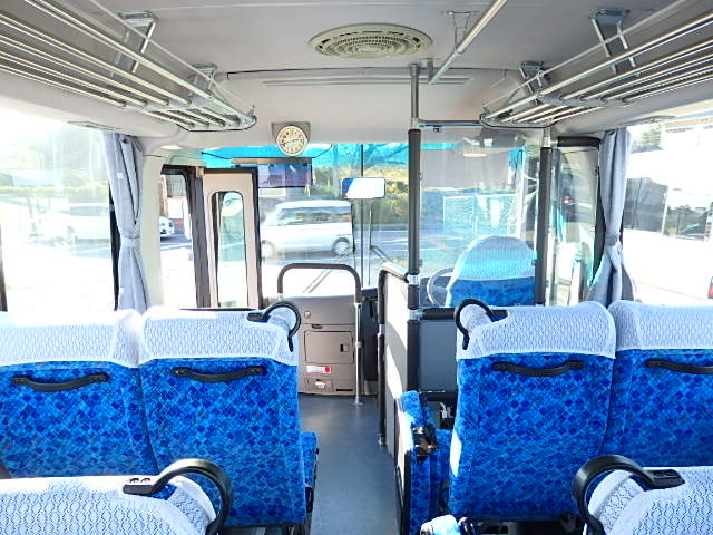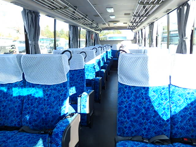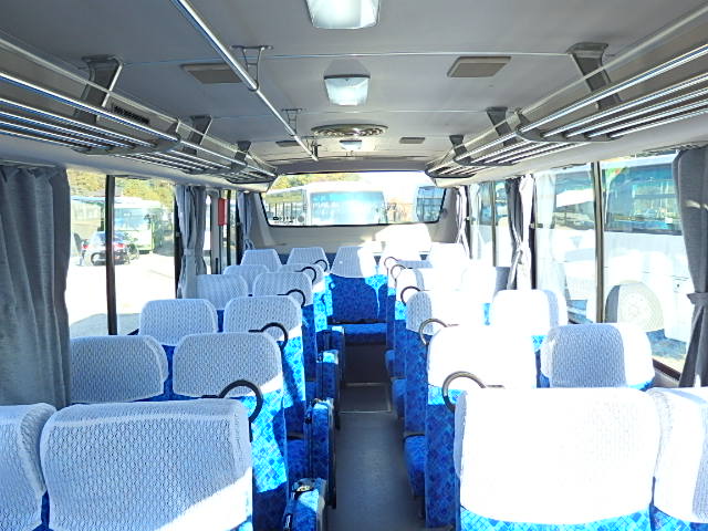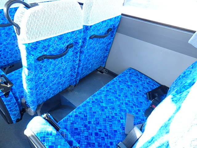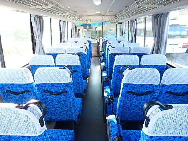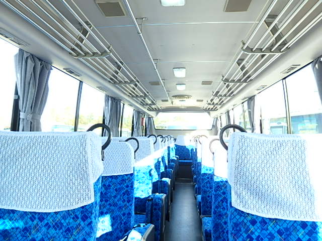 送迎仕様 9列シート 6MT モケット・ハイバック固定シート+補助席*(シート生地張替施工実施済) エアコン・直結式 ヒーター・温水式 ラジオアンプ(マイク機能付) エアコン・直結式 ヒーター・温水式 換気扇・2基 バックアイカメラ・カラー液晶モニター タイヤ状態:夏用縦溝・50% 塗装状態:薄青・1色・現状