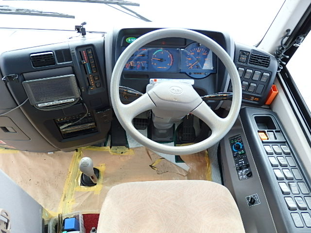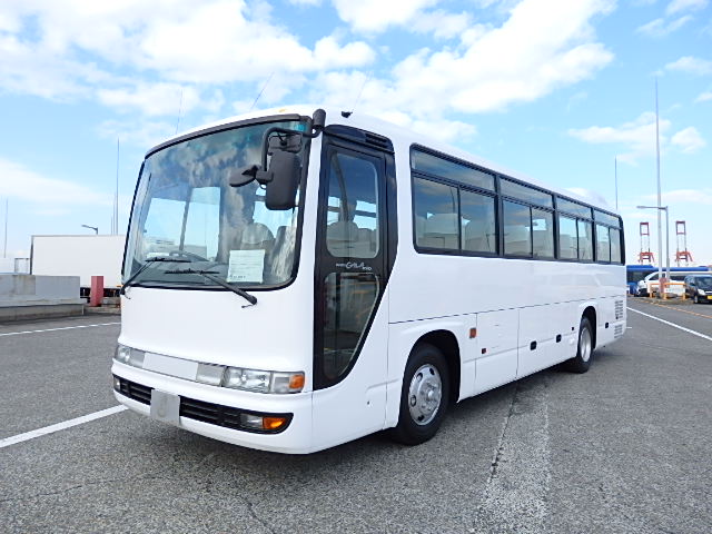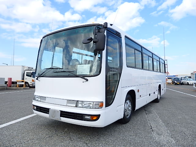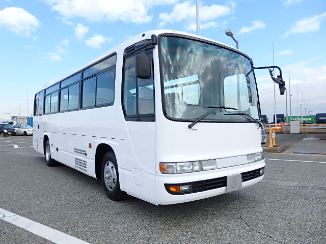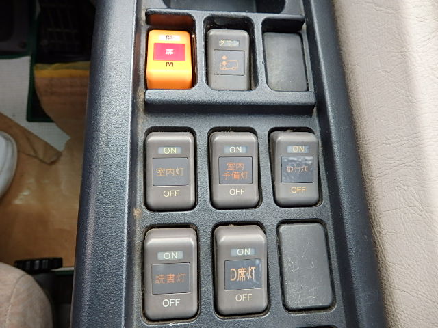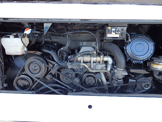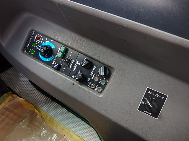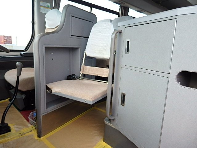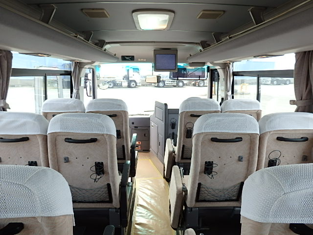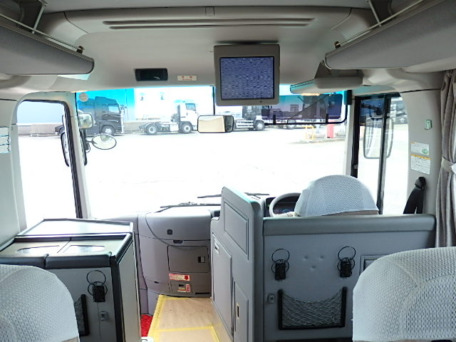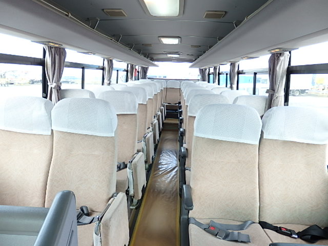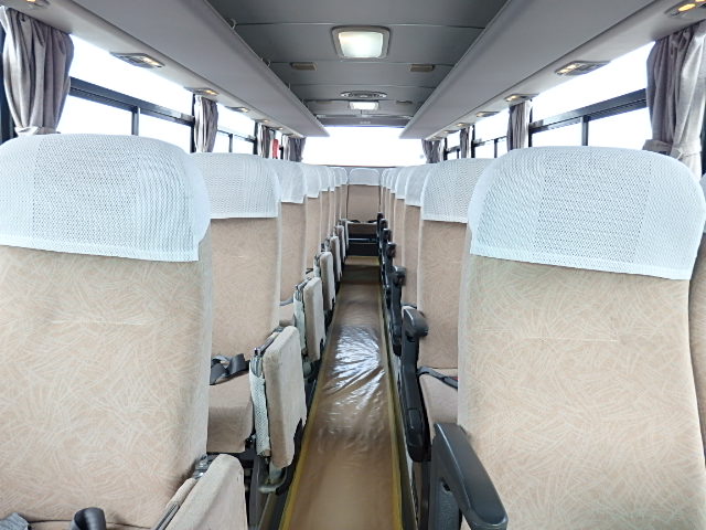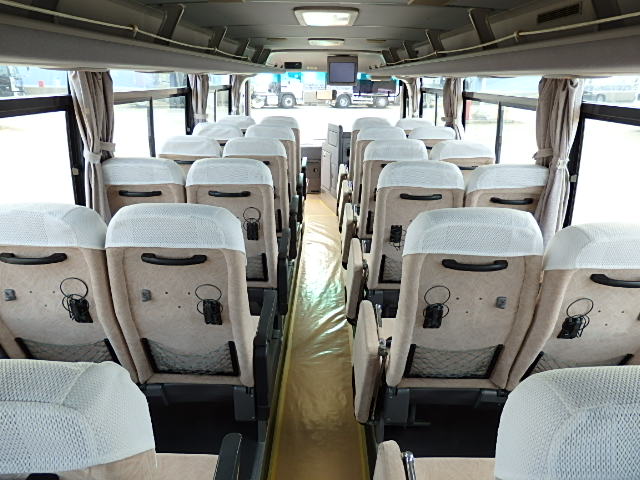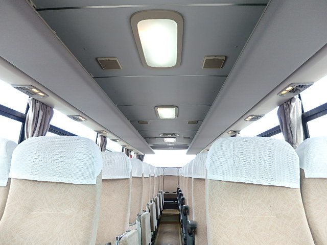 - 送迎仕様 8列シート*(正座席・33名+補助席・7名+D席・1名+G席・1名) シフト・6MT モケット・リクライニングシート+補助席 フロント部・液晶TVモニター*(地デジチューナーなし) 冷蔵庫 エアコン・直結式 ヒーター・プレヒーター(DENSO製) ミラーヒーター 運転席側面ガラス+スイング扉・下部ガラス・熱線入り ステップヒーター 換気扇・2基 バックアイカメラ・カラー液晶モニター タイヤ状態:夏用縦溝・30% 塗装状態:全塗装仕上げ実施・白1色