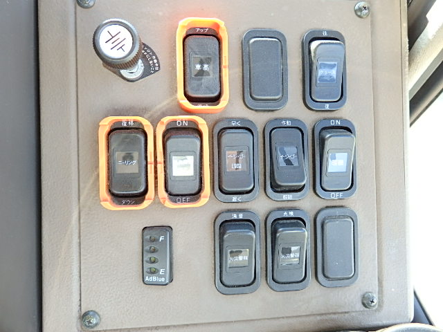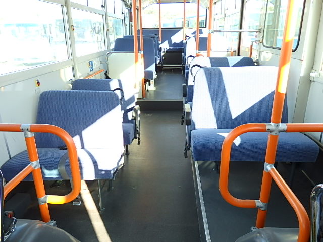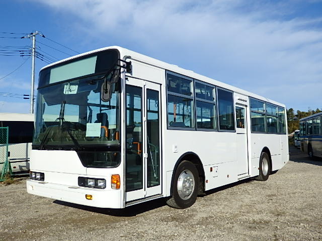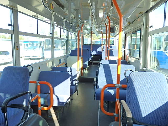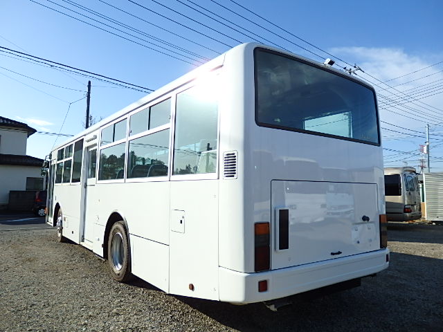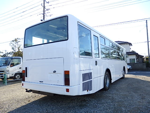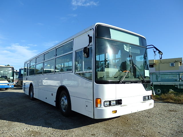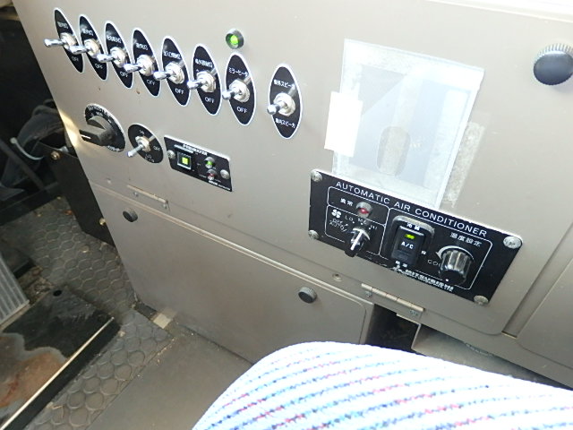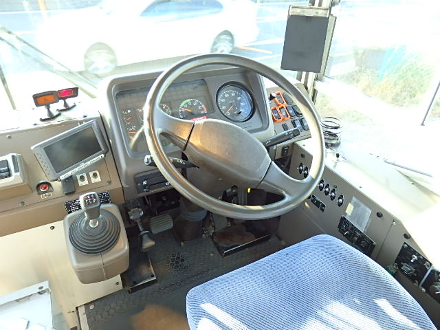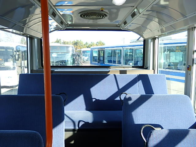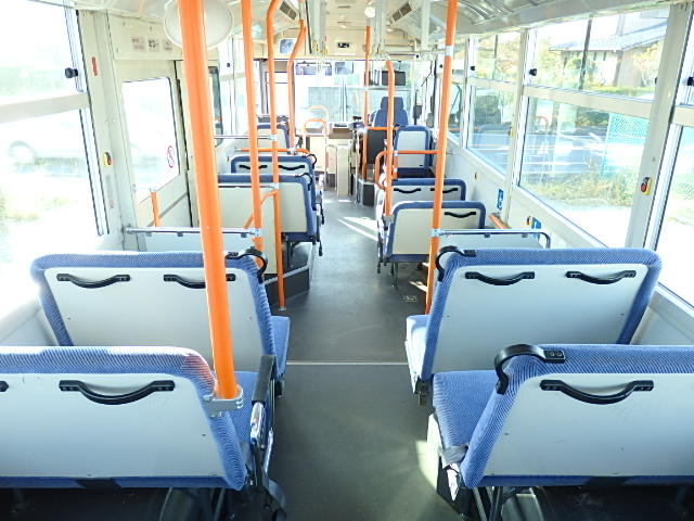 送迎バス仕様 前中扉  ニーリング機能 シフト・5MT 定員・71名*(正座席・33名+D席・1名+立席・37名) シートレイアウト*(路線・シャトルバス仕様) エアコン・直結式 ヒーター・プレヒーター装備(三国製) 降車ボタン 車椅子固定スペース *車椅子スロープ板・装備 換気扇・2基 バックアイカメラ・カラー液晶モニター タイヤ状態・MIX・30% 塗装状態:指定色・現状