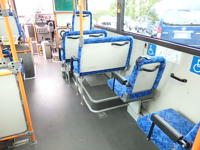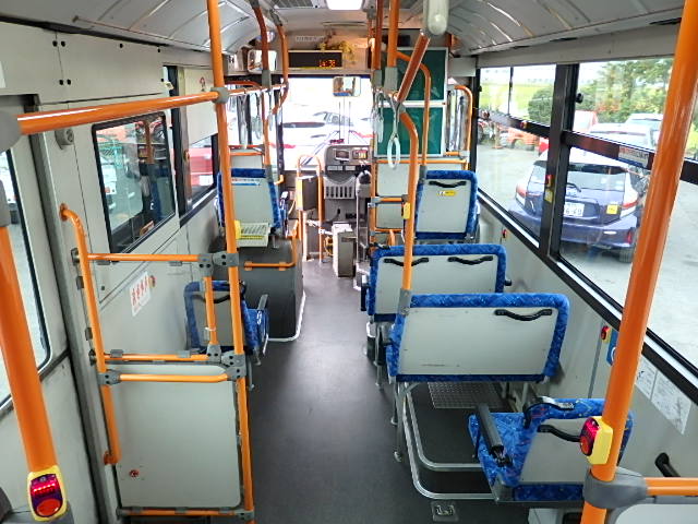 - 中型路線・ノンステップ式 *郊外線仕様 PDG-KR234J2 定員・59名*(正座席・27名+D席・1名+立席・31名)*シートレイアウト・運転席側2人掛け バリアーフリー適合車 車椅子用スロープ板(中扉格納式) エアコン・DESNO製 ヒーター・プレヒーター装着(DENSO製) LED方向幕・クラリオン製 音声合成・クラリオン製 降車ボタン バックアイカメラ・カラー液晶モニター バックミラー・ミラー+運転席側面・ガラス*ヒーター装備 換気扇・2基 タイヤ状態:MIX(交換必要) 塗装状態:指定色・現状(塗装変更要す)