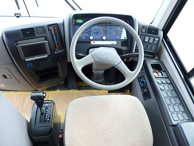 - 送迎仕様 9列シート AT(アイシン製) モケット・ハイバック・リクライニング式シート+補助席*補助席1席(追加分)・取付実施済 エアコン・直結式 ヒーター・温水式 ラジオアンプ(マイク機能付) エアコン・直結式 ヒーター・温水式 バックアイカメラ・カラー液晶モニター タイヤ状態:夏用縦溝・50% 塗装状態:指定色・現状(塗装変更必要)