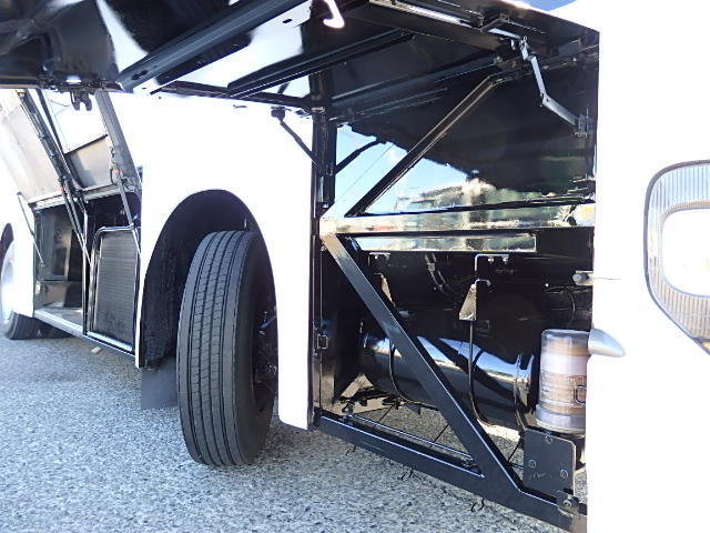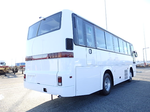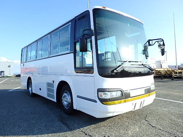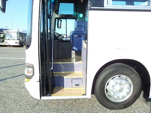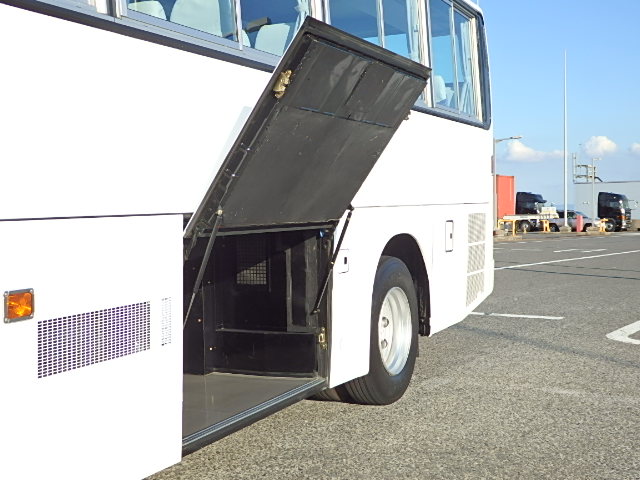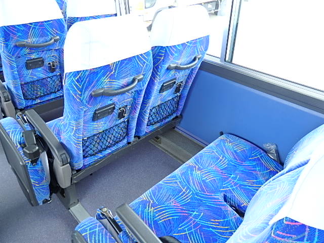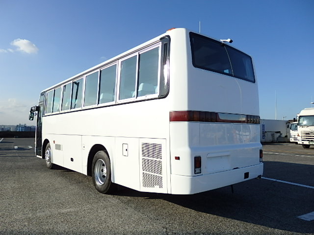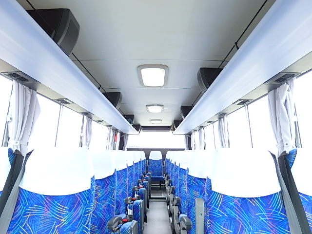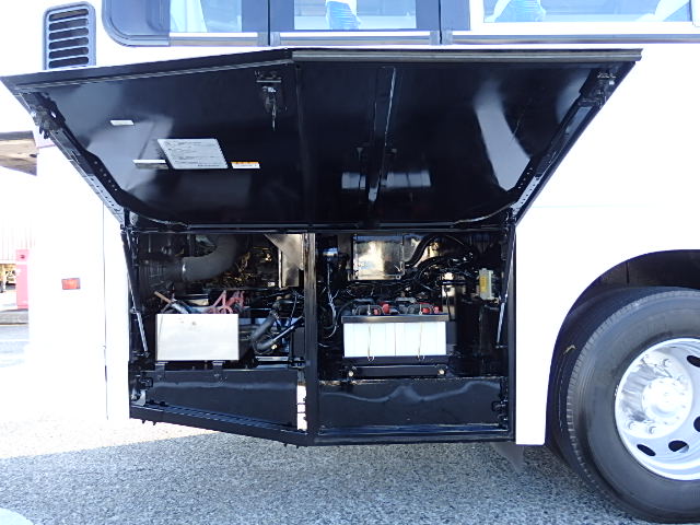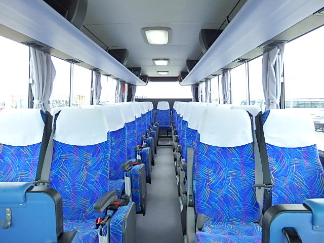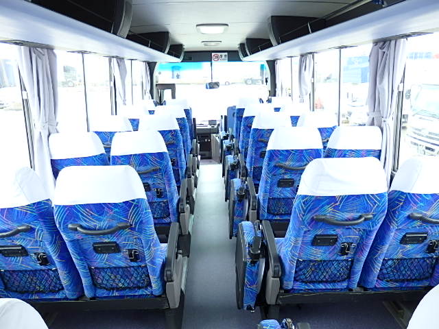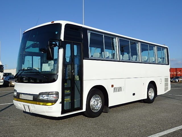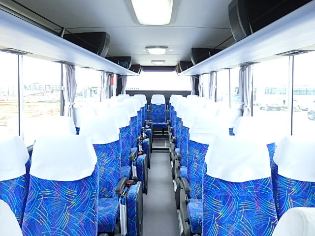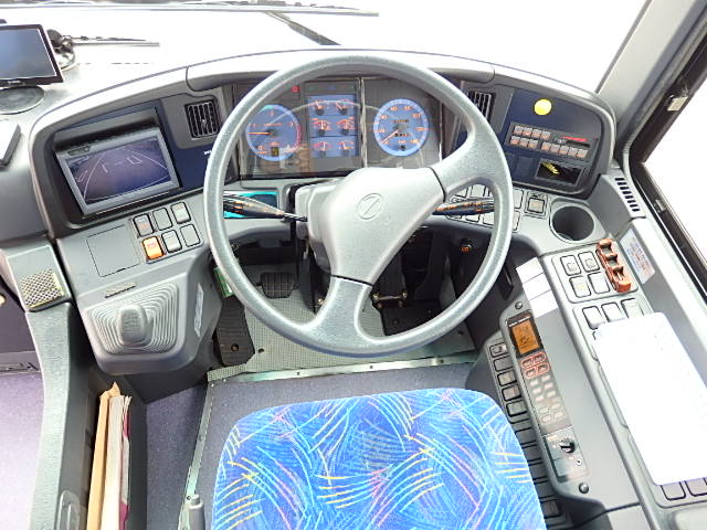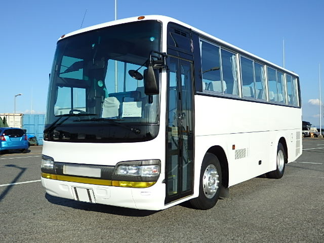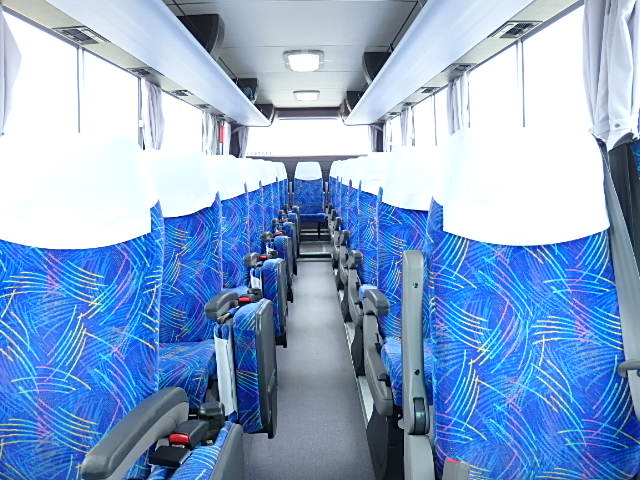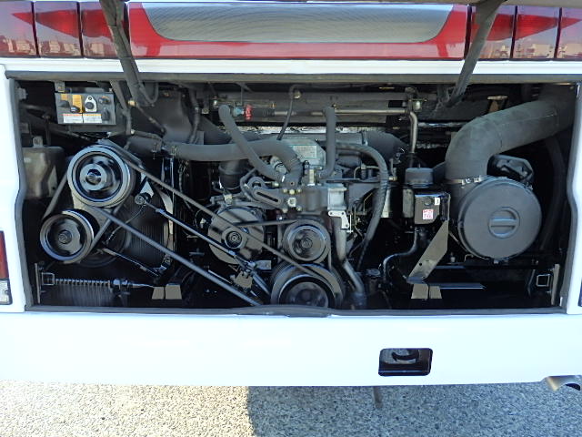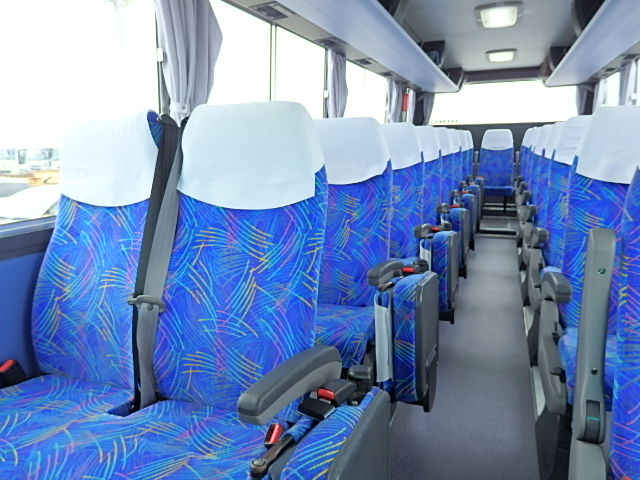 ハイデッカー 送迎仕様 シフト・FF・6速 8列シート・モケット・リクライニング式(正座席・33名+補助席・7名+D席・1名+G席・1名) フルオートエアコン(DESNO製)*ヒーター・燃焼式 オーディオアンプ・マイク機能付き 床下トランク・1本 タイヤ状態:夏用ラジアル・6本・50% 塗装状態:指定色・現状 ⇒ 全塗装施工実施済み(白1色)