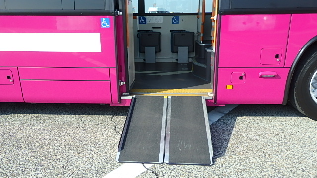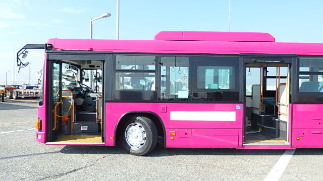 路線バス仕様 ノンステップ式 バリアフリー適合 ニーリング・車高調整機能 6F・フィンガーシフト  エアコン(DENSO製) ヒーター・温水循環式 マイク機能付き・オーディオアンプ 車外スピーカー バックアイカメラ・液晶モニター付 車椅子用・スロープ板 タイヤ状態・夏用 塗装状態・指定色・現状