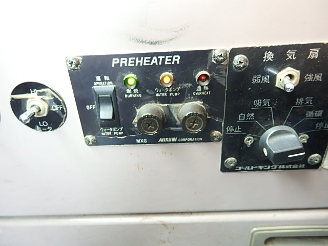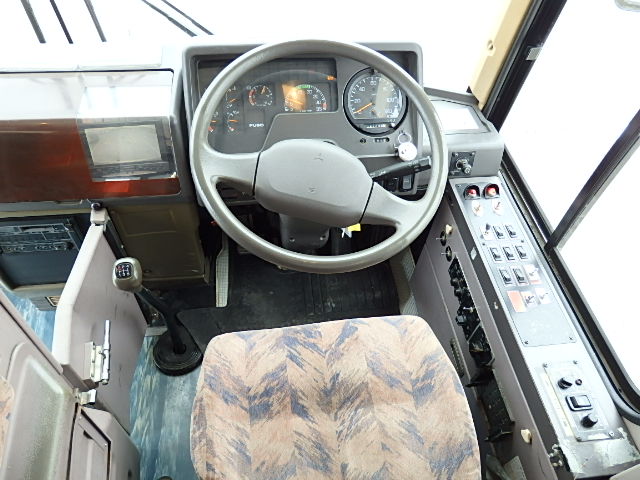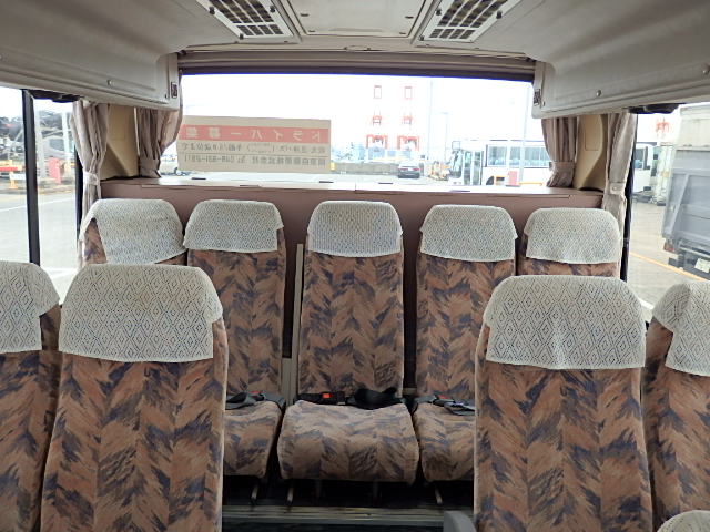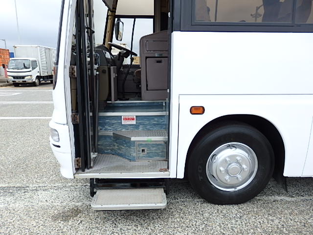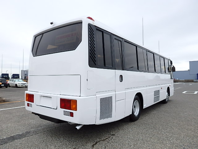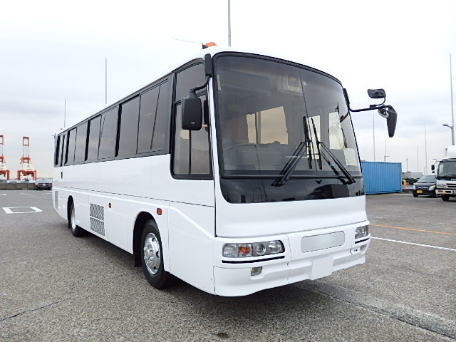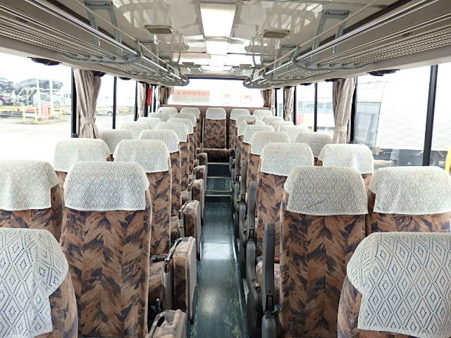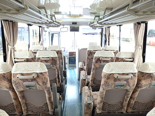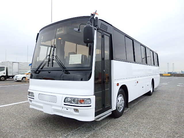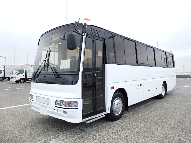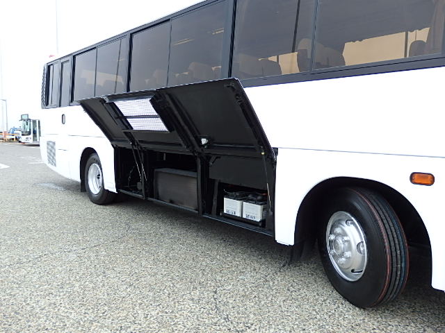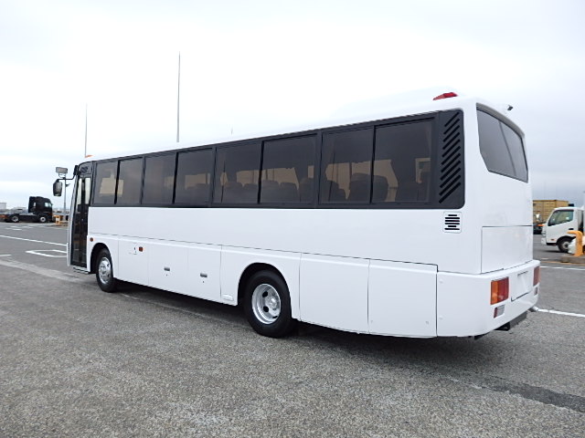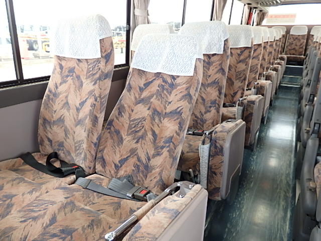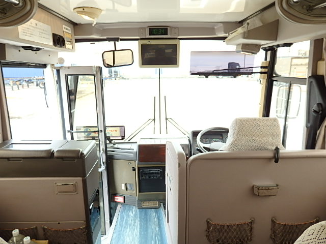 - 送迎仕様 47名乗り*(正座席・37名+補助席・8名+D席・1名+G席・1名) 自動扉 9列・モケット・リクライニング式 直結式エアコン(DENSO製) ヒーター・プレヒーター式(三国製) 液晶TV(フロント) 冷蔵庫 電動式・補助ステップ 換気扇・1基(前側) バックアイカメラ・カラー液晶モニター装着 タイヤ状態・夏用タイヤ・4本・新品+2本(後輪内側)・30% * 塗装状態:全塗装実施済・白1色 *旧使用者・事業用・学校の送迎にて運行