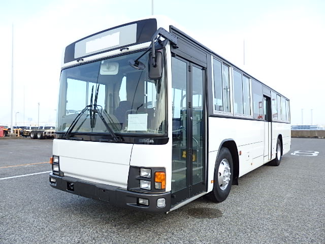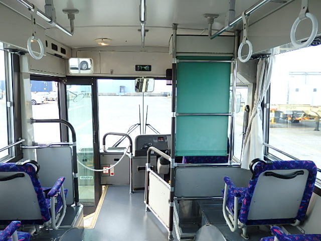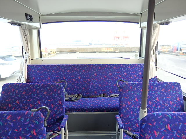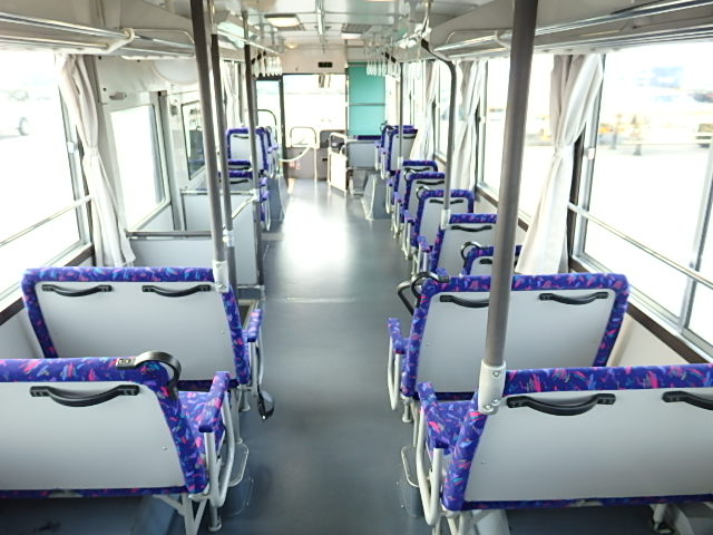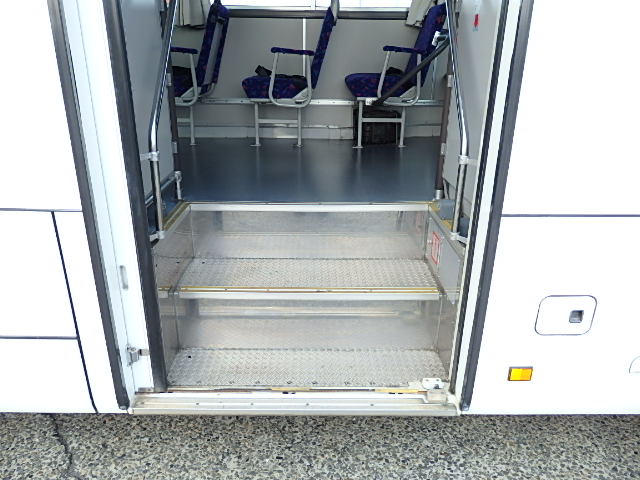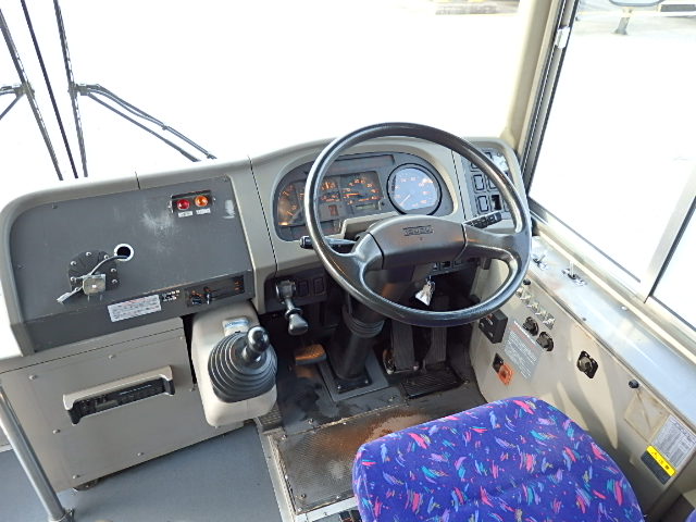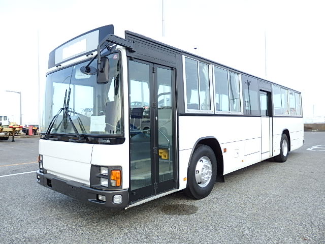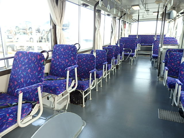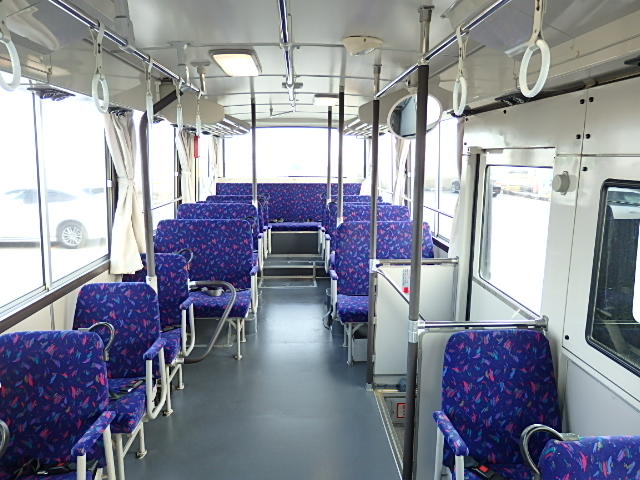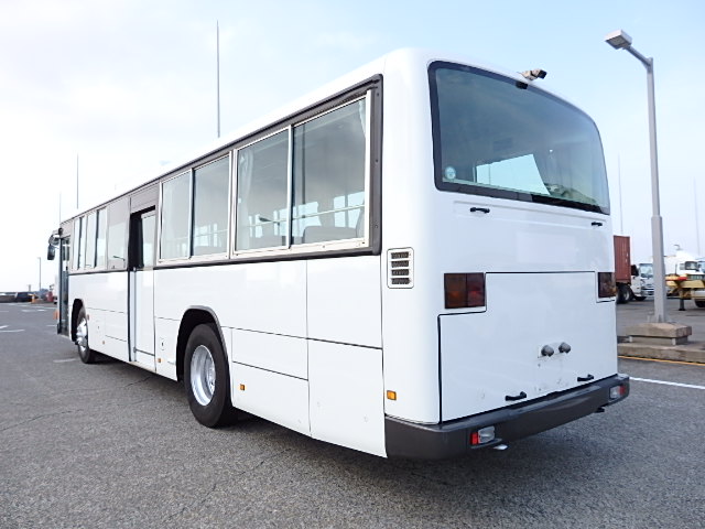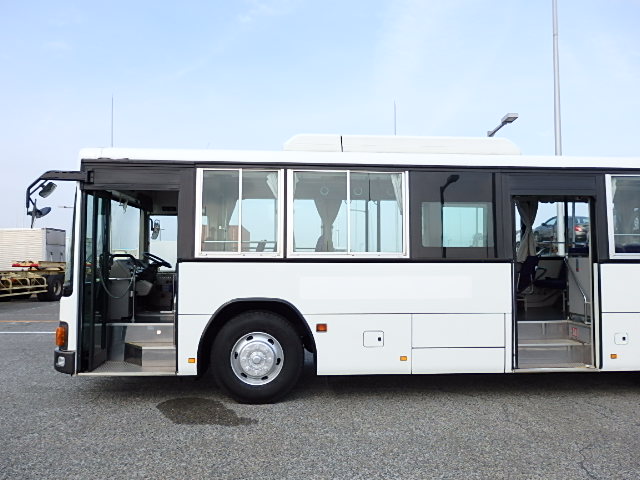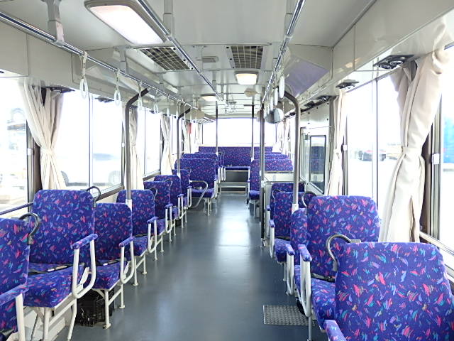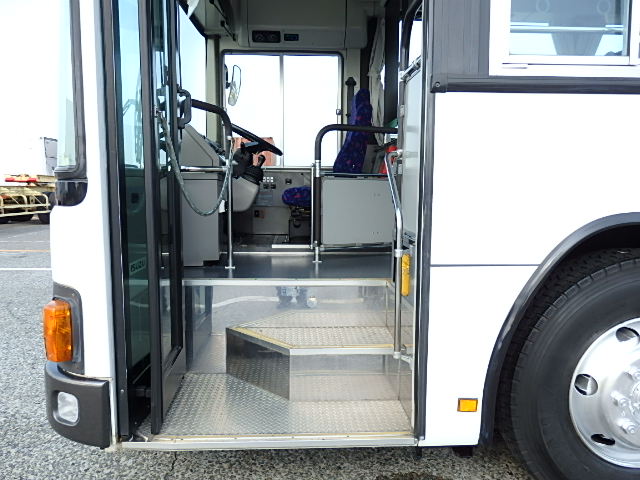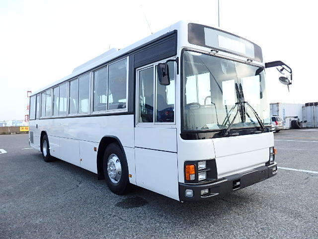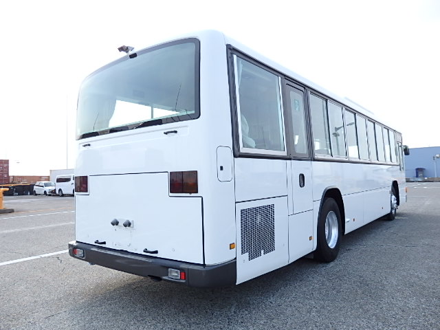 大型送迎用 シャトルバス仕様 前中扉  シフト・5MT  定員・86名*(正座席・33名+D席・1名+立席・52名) エアコン・直結式(DENSO製) ヒーター・温水循環式 ラシオ(マイク機能付) バックアイカメラ・カラー液晶モニター タイヤ状態・夏用タイヤ・30% 塗装状態:白1色(磨き仕上げ)