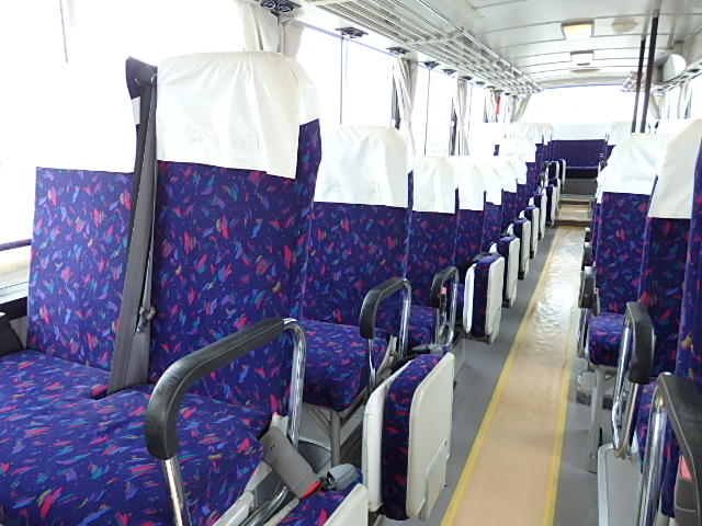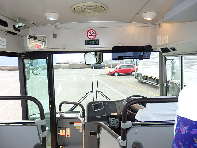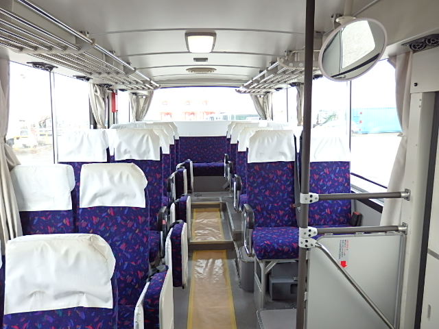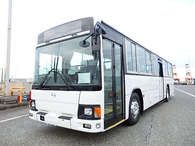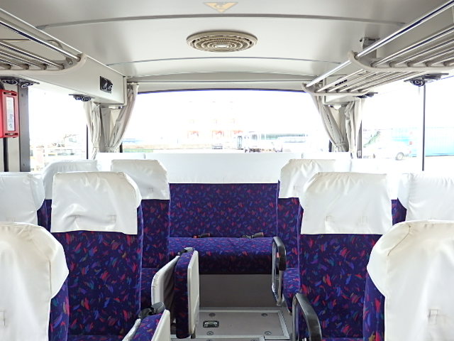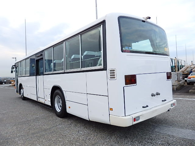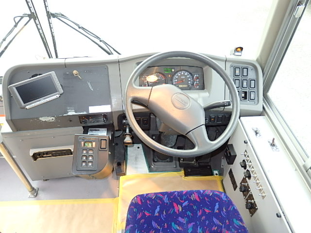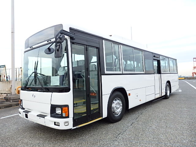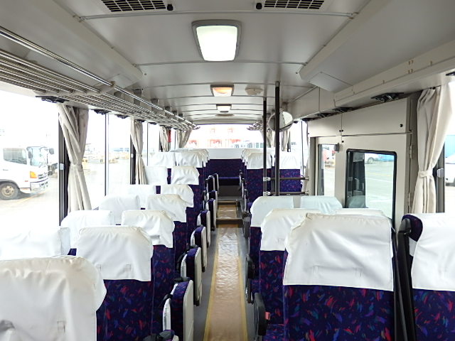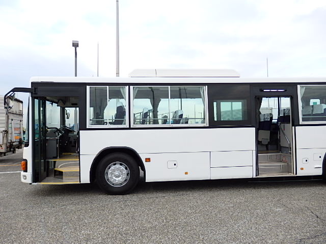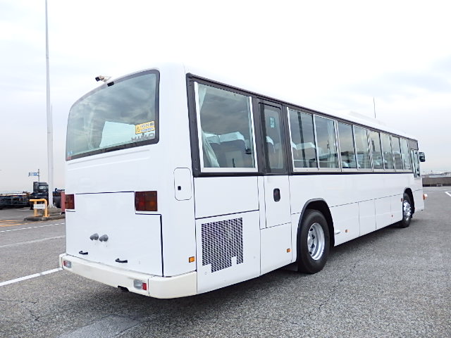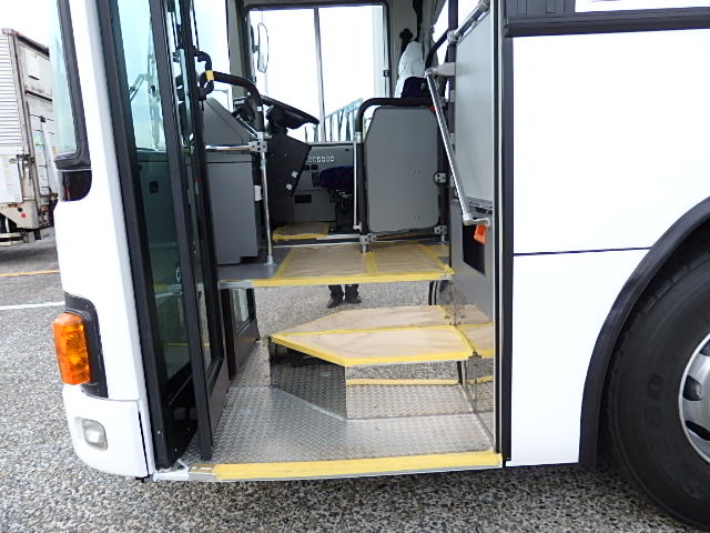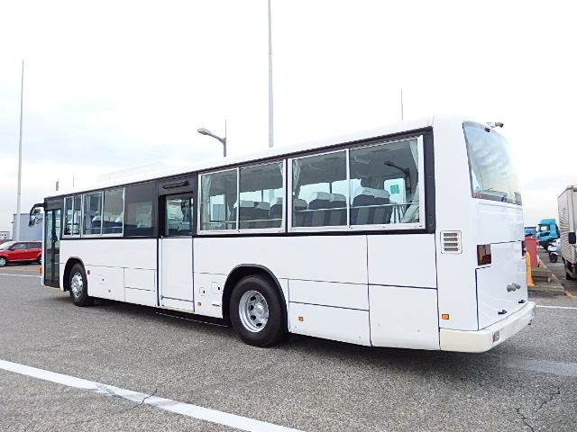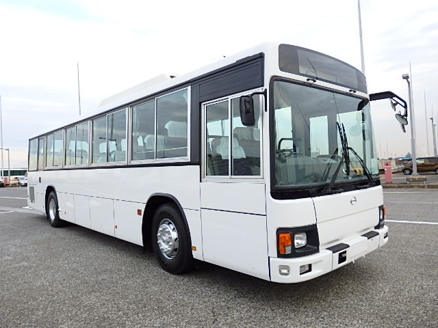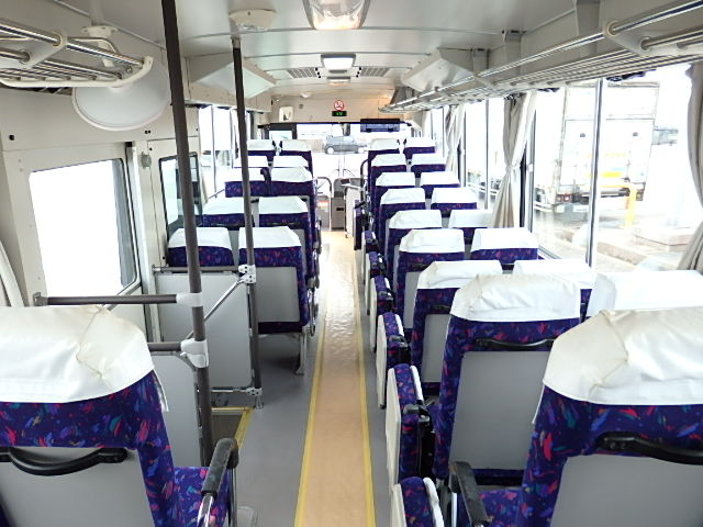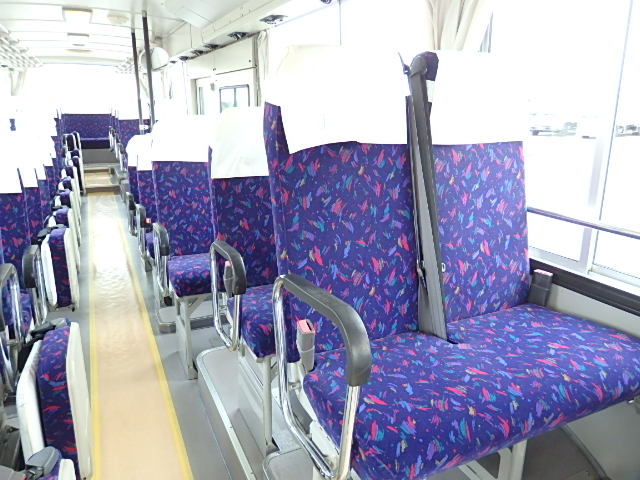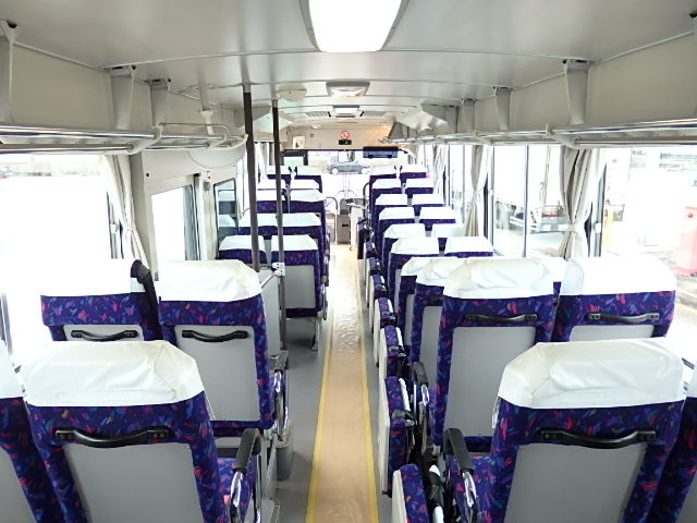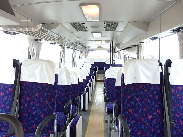 送迎仕様 前中扉  シフト・AT(アリソン製)  定員・59名*(正座席・46名+D席・1名+補助席・12名) モケットハイバック固定式+補助席(運転席側・13列・出入口側・10列) エアコン・直結式(DENSO製) ヒーター・温水循環式 ラジオ(マイク機能付) バックアイカメラ・カラー液晶モニター タイヤ状態・夏用タイヤ・30% 塗装状態:白1色(磨き仕上げ)