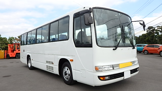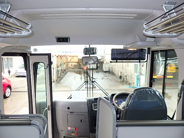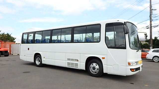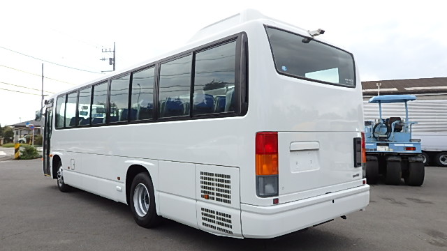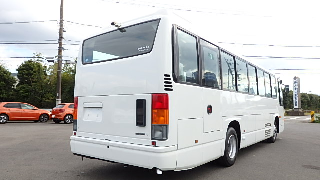 - 送迎仕様 ニーリング機能 9列シート・定員・45名乗り *(正座席・37名+補助席・7名+D席・1名)ハイバック・モケット・固定式式+補助席 エアコン・直結式 ヒーター・寒冷地用プレヒーター ラジオアンプ 換気扇・2基(前後) バックアイカメラ・カラー液晶モニター タイヤ状態・夏用ラジアルタイヤ装着・6本・20% 塗装状態:白1色・補修磨き予定