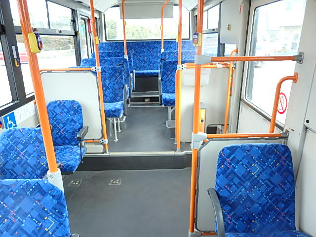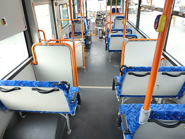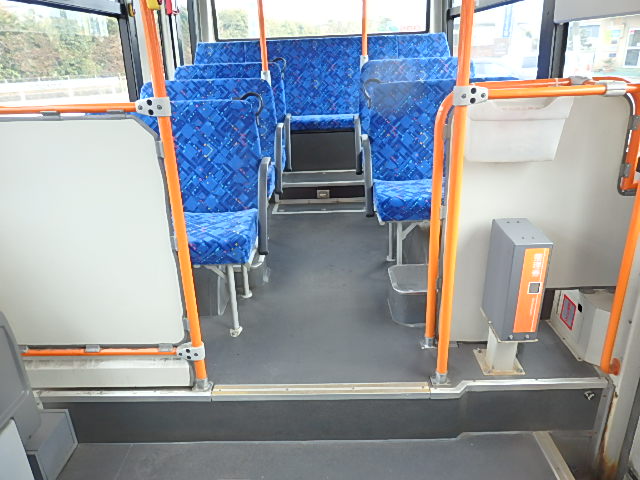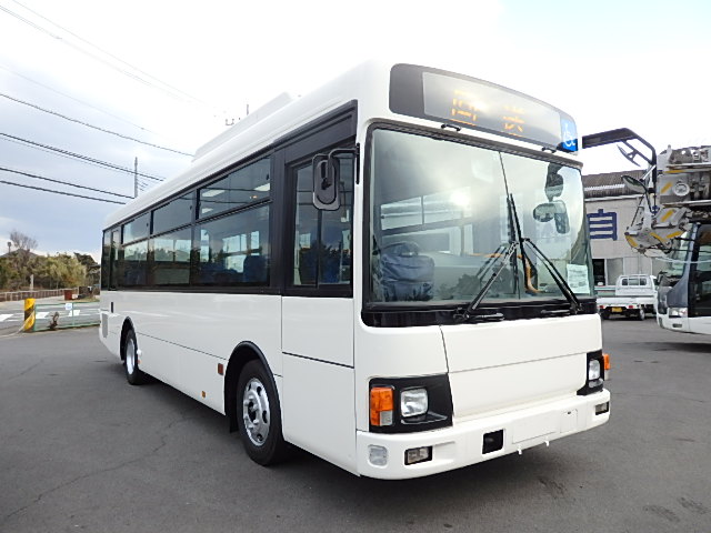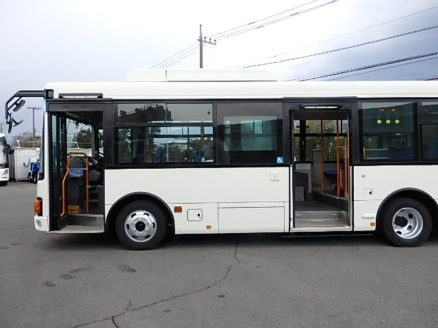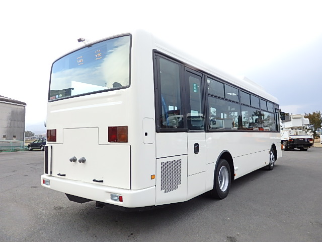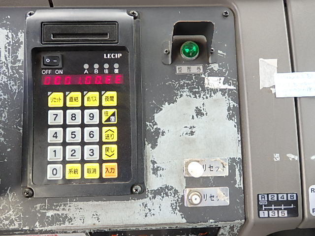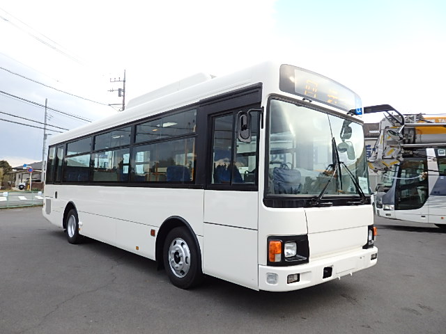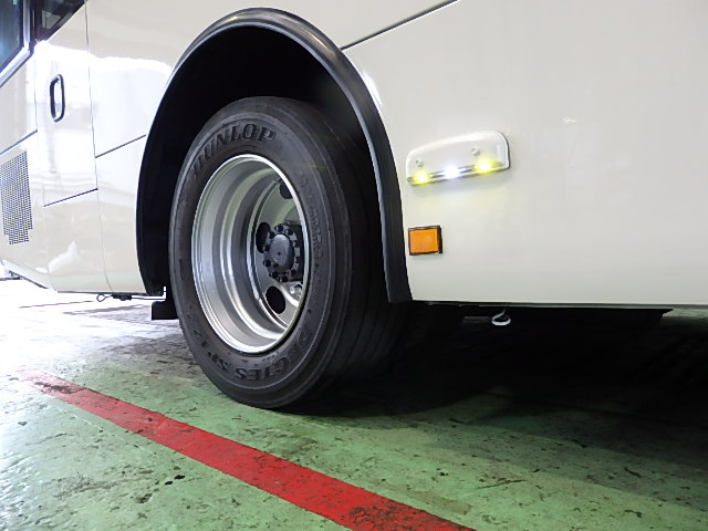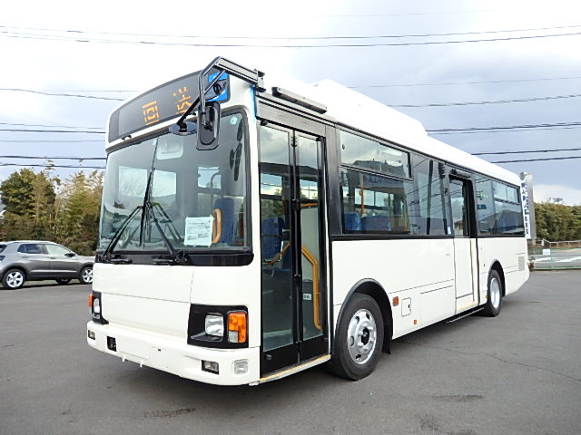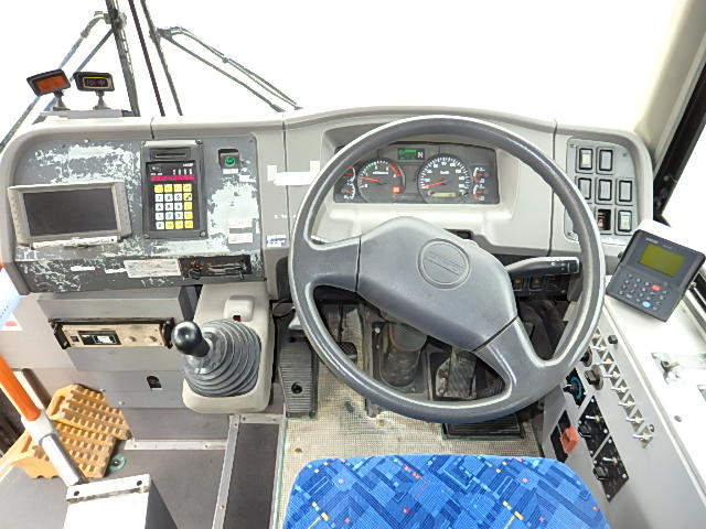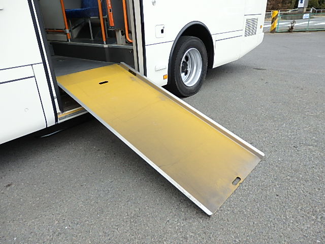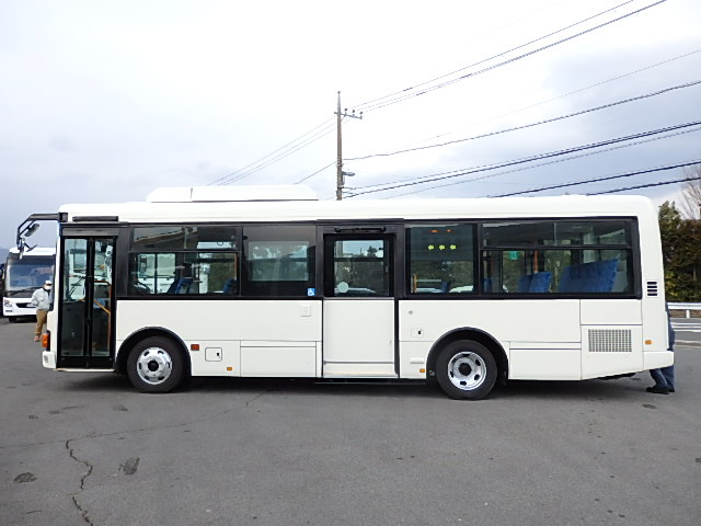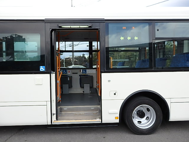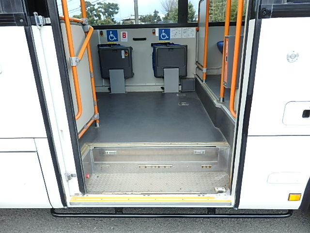 中型路線・ワンステップ式 *郊外線仕様 SKG-KR290J1 定員・59名*(正座席・26名+D席・1名+立席・32名)*シートレイアウト・運転席側2人掛け バリアーフリー適合車 車椅子用スロープ板(中扉格納式) エアコン・DESNO製 ヒーター・温水循環式 LED方向幕・レシップ製 音声合成・レシップ製 ニーリング機能・装備なし 降車ボタン バックアイカメラ・カラー液晶モニター 運転席側面・ガラス*ヒーター付 換気扇・2基 タイヤ状態:夏用ラジアルタイヤ・6本(交換必要) 塗装状態:全塗装施工実施済