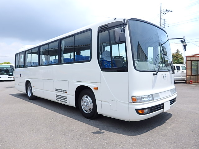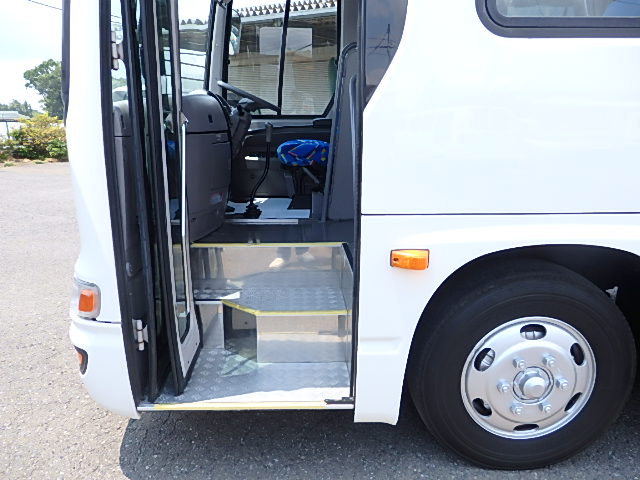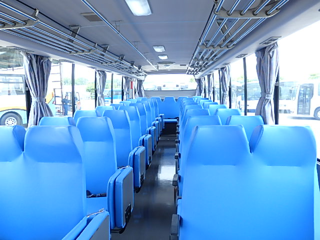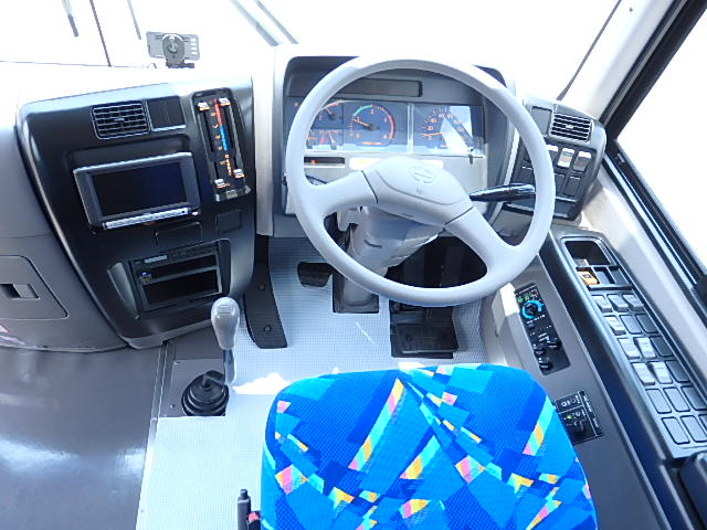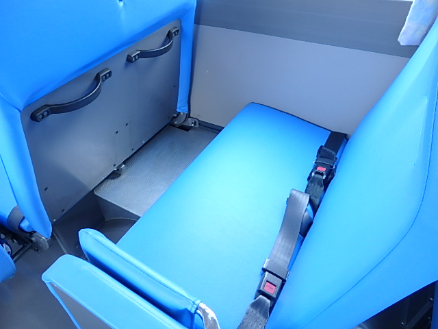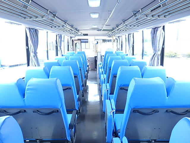 中型送迎・特別支援学校送迎仕様 46名乗り*(正座席・38名+補助席・7名+D席・1名)9列シート・ソフトレザー(青系)・ハイバック・固定式+補助席 直結式エアコン(DENSO製)ヒーター・寒冷地用プレヒーター(DENSO製) 換気扇・2基(前後) 補助ステップ・装着なし バックアイカメラ・カラー液晶モニター装着 タイヤ状態・夏用ラジアルタイヤ・6本(9R19.5) 塗装状態:白1色・ボディ磨き仕上げ *シート生地・張替実施済