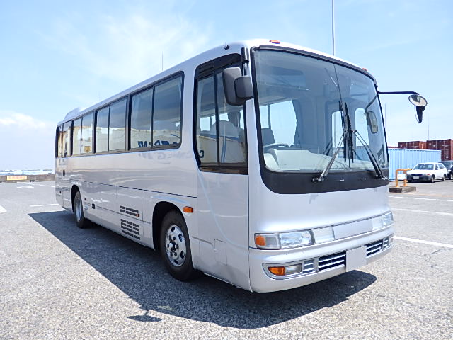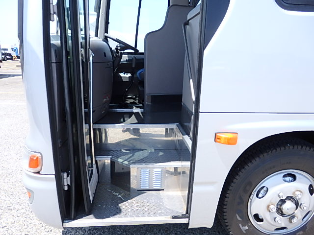 - 送迎仕様 ニーリング機能 8列シート・定員・41名乗り *(正座席・33名+補助席・7名+D席・1名)ハイバック・モケット・リクライニング式+補助席 エアコン・直結式 ヒーター・寒冷地用プレヒーター(DENSO製)バッキミラー左右・熱線入り 運転席側面ガラス・熱線入り ラジオアンプ バックアイカメラ・カラー液晶モニター タイヤ状態・冬用スタッドレスタイヤ装着・6本・50% 塗装状態:シルバーメタリック1色・補修磨き予定
