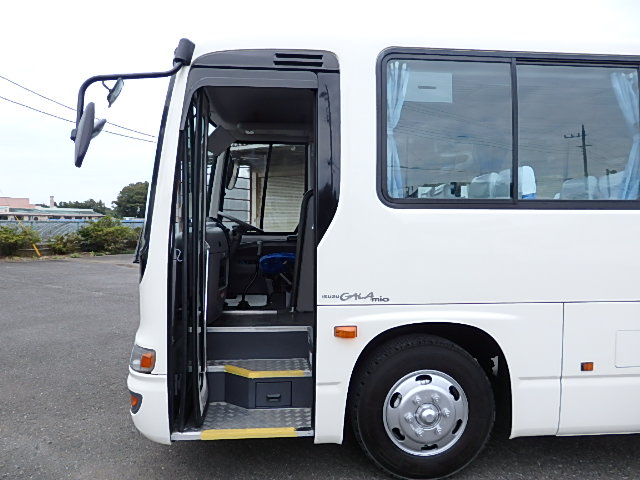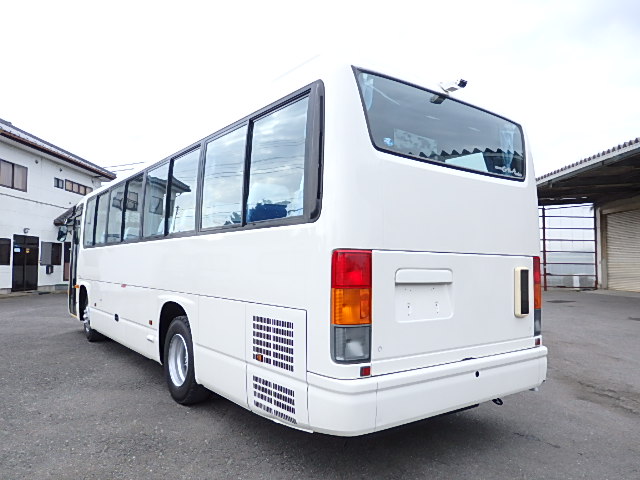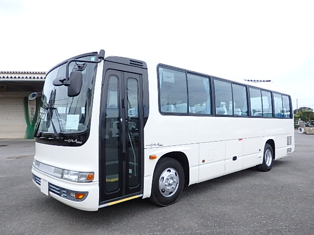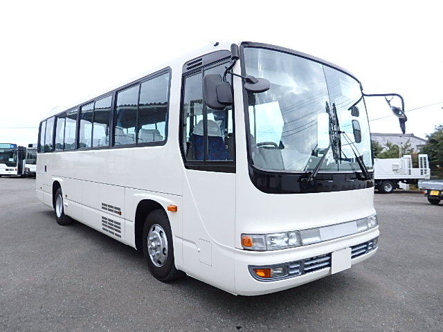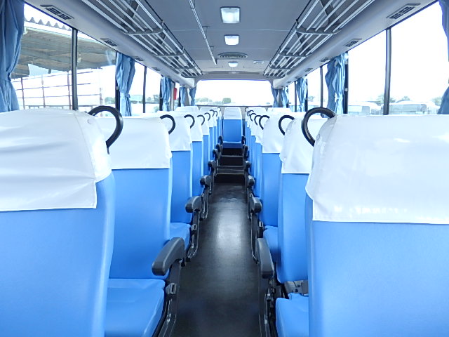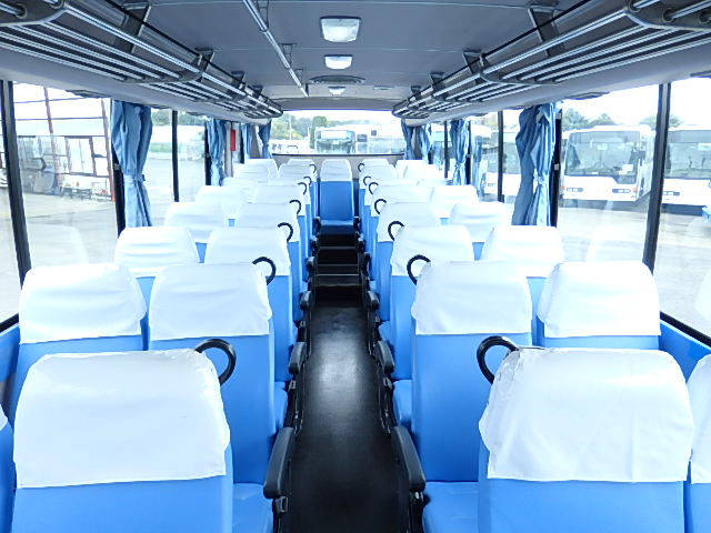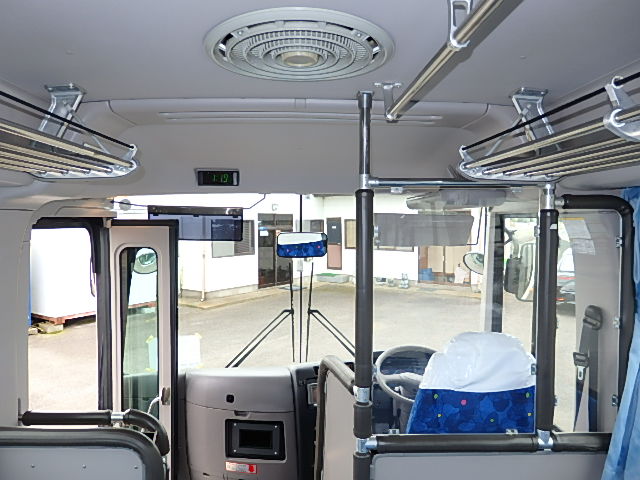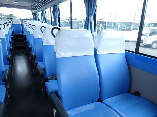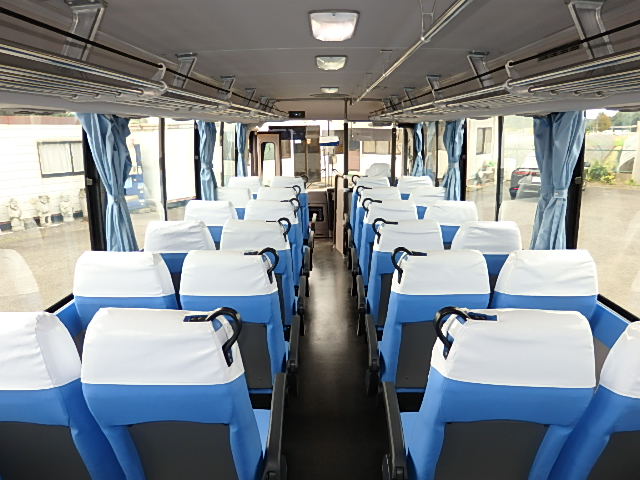 - 中型送迎・スクールバス仕様 ニーリング機能付 38名乗り*(正座席・37名+D席・1名)9列シート・ソフトレザー(青系)・ハイバック・固定式 直結式エアコン(DENSO製)ヒーター・温水循環式 換気扇・2基(前後) バックアイカメラ・カラー液晶モニター装着 タイヤ状態・冬用スタッドレスタイヤ・6本(9R19.5)・30% 塗装状態:白1色・ボディ磨き仕上げ
