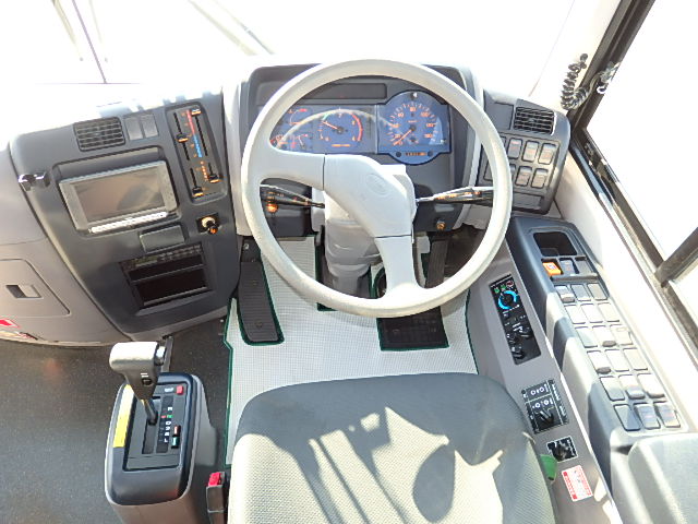 - 送迎仕様 AT ニーリング機能 9列シート・定員・45名乗り *(正座席・37名+補助席・7名+D席・1名+)ハイバック・モケットシート+補助席 エアコン・直結式 ヒーター・寒冷地用プレヒーター(DENSO製) 換気扇・2基(前後) バッキミラー左右・熱線入り 運転席側面ガラス・熱線入り ラジオアンプ バックアイカメラ・カラー液晶モニター タイヤ状態・夏用ラジアルタイヤ装着・6本・50% 塗装状態:現状磨き仕上げ予定・白1色