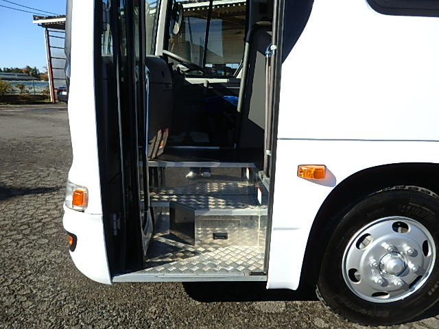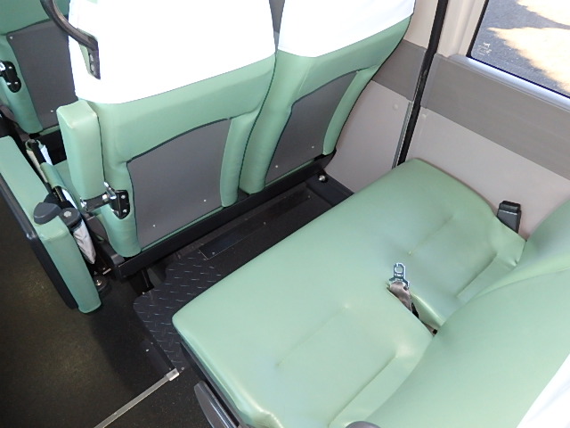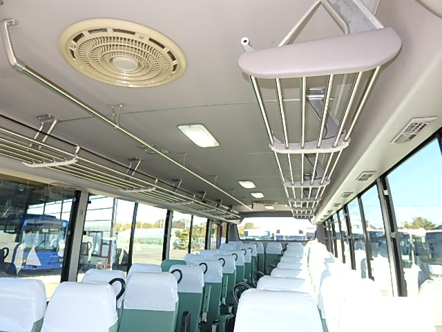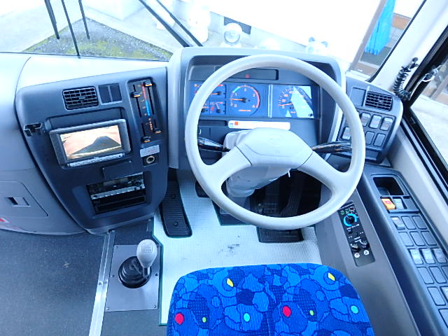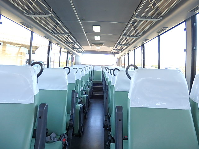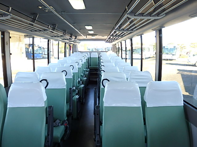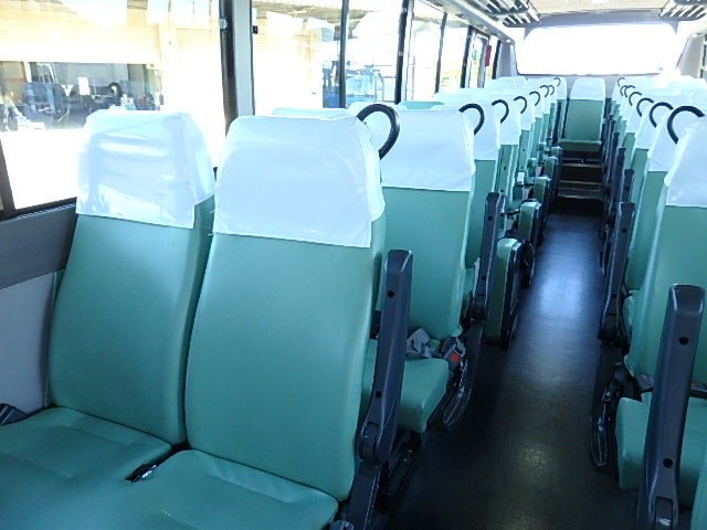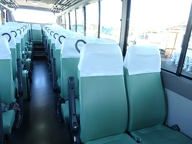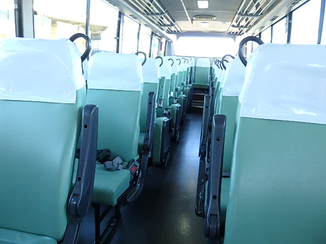 - 中型送迎・スクールバス仕様 ニーリング機能付 43名乗り*(正座席・37名+補助席・5名+D席・1名)9列シート・ソフトレザー(緑系)・ハイバック・固定式 直結式エアコン(DENSO製)ヒーター・温水循環式 換気扇・2基(前後) バックアイカメラ・カラー液晶モニター装着 タイヤ状態・冬用スタッドレスタイヤ・6本(9R19.5)・30% 塗装状態:白1色・全塗装施工・実施済