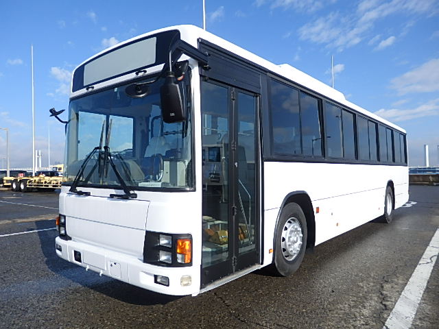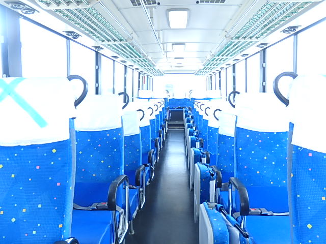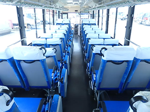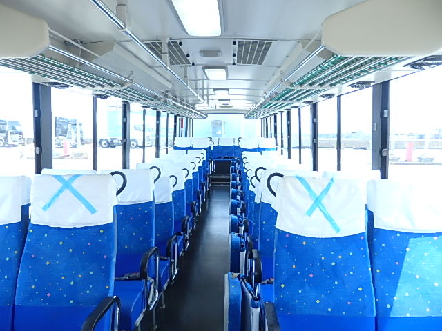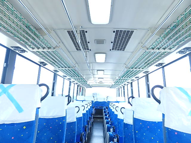 TOP扉 12列シート  ニーリング機能 シフト・6MT 定員・79名*(正座席・49名+補助席・11名+D席・1名+立席・18名)エアコン・直結式(DENSO製) ヒーター・温水循環式 ラジオアンプ・マイク機能付き バックアイカメラ・カラー液晶モニター 換気扇・2基(前後) タイヤ状態・冬用スタッドレスタイヤ・6本・30% 塗装状態:全塗装施工実施済・白1色
