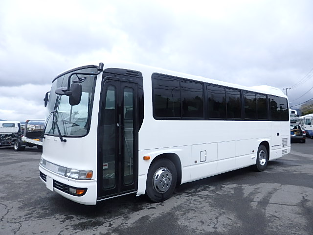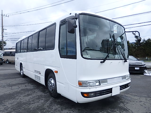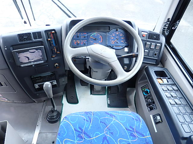 - 中型送迎・後部荷物スペース仕様 ニーリング機能付 39名乗り*(正座席・30名+補助席・8名+D席・1名)8列シート+7列シート・ハイバック・モケット・リクライニング式+補助席あり 直結式エアコン(DENSO製)ヒーター・寒冷地用プレヒーター・新規取付実施済(MIKUNI製) 換気扇・2基(前後) バックアイカメラ・カラー液晶モニター装着 タイヤ状態・スタッドレスタイヤ・6本(9R19.5)・新品交換実施済 塗装状態:全塗装施工実施済・白1色