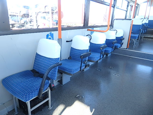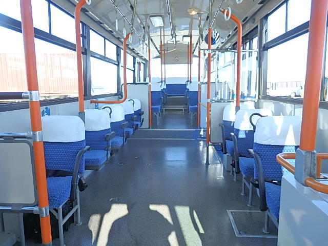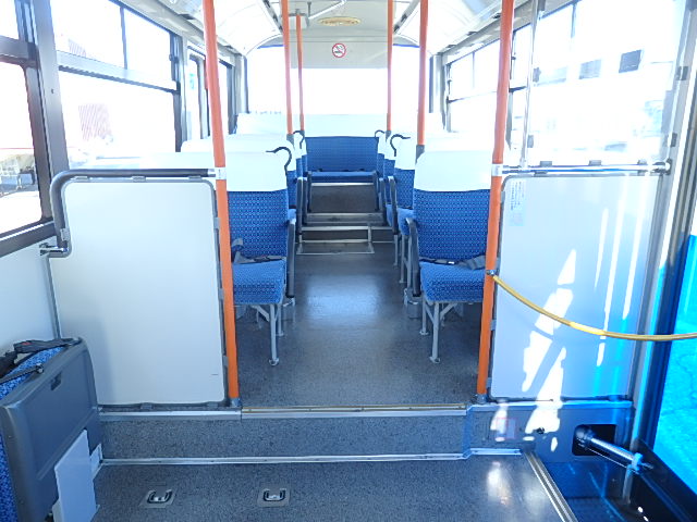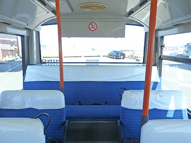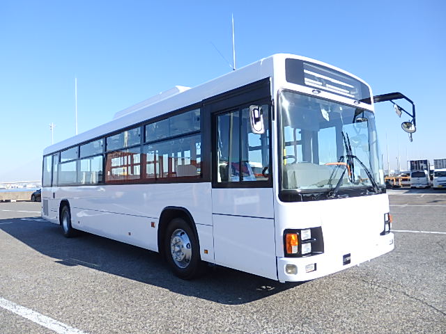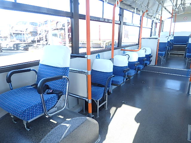 - 路線仕様・前中扉(4枚折戸)・ワンステップ式 *バリアフリー適合(車椅子・2基固定) *車椅子スロープ板・格納式 エンジン・6HK1(300PS) シフト・5MT ABS装着 走行距離・210.000Km(推定)*(メーター交換歴あり・185.000Km前後交換・推定) 定員・88名*(正座席・31名+D席・1名+立席・56名) エアコン・直結式(DENSO製) ヒーター・寒冷地用プレヒーター(ミクニ製) ラシオ(マイク機能付) バックアイカメラ・カラー液晶モニター 換気扇・前後・2基装着 方向幕(前後)・幕式タイプ タイヤ状態・MIXタイヤ・10%(6本・交換必要) 塗装状態:全塗装施工実施済・白1色