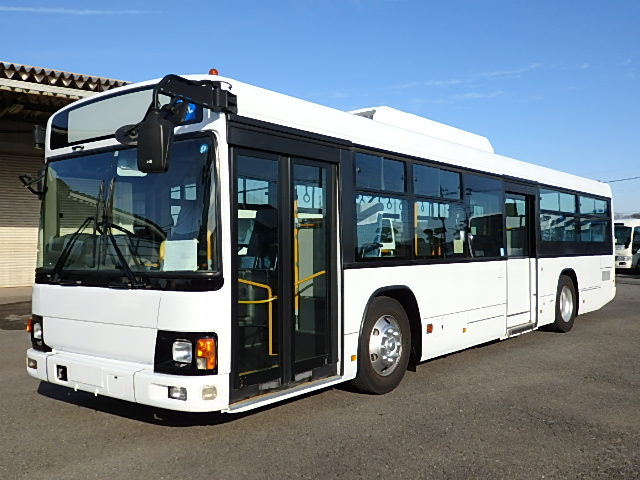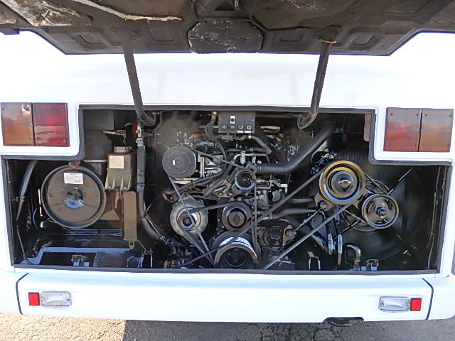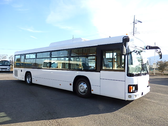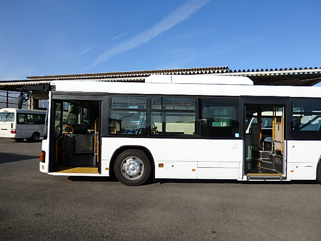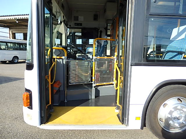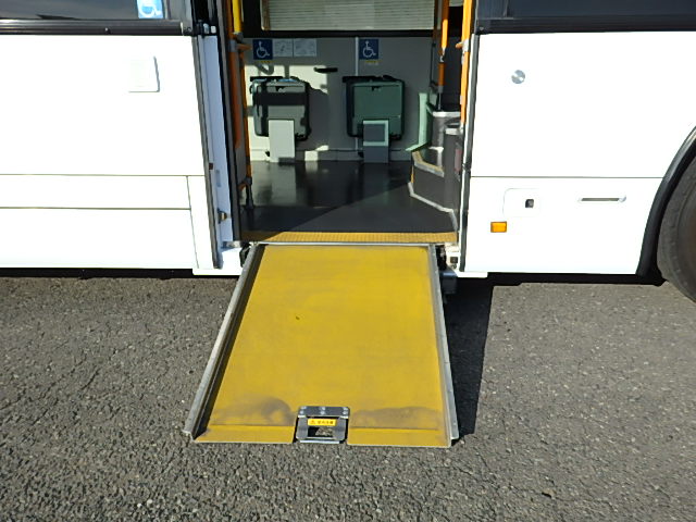 - 大型送迎仕様・ノンステップ式 シフト・6MT ニーリング装置装着 定員・77名*(正座席・31名+D席・1名+立席・45名)*シートレイアウト・路線バス仕様 バリアーフリー適合車 車椅子用スロープ板(中扉・床部収納式) エアコン・DESNO製 ヒーター・寒冷地用プレヒーター(DENSO製) バックアイカメラ・カラー液晶モニター 換気扇・2基 ミラーヒーター装着 タイヤ状態:MIXタイヤ・6本・30% 塗装状態:全塗装実施済・白1色