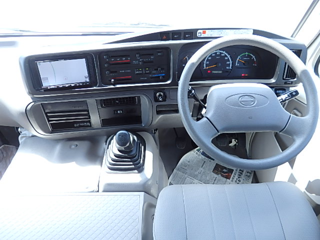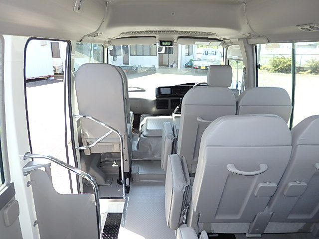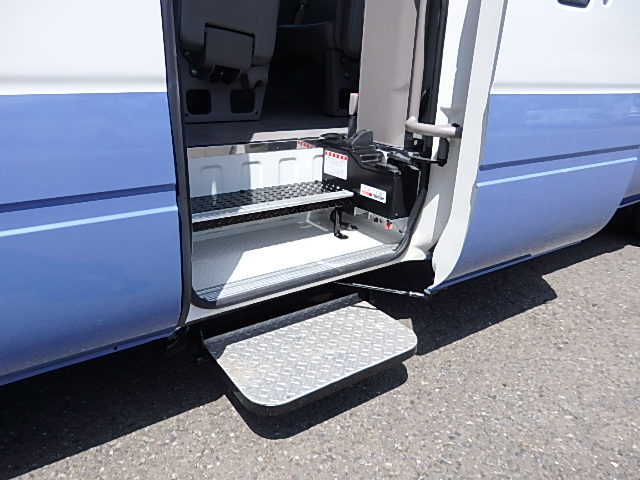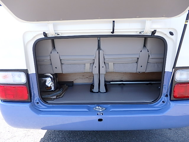 - グレード・LX シフト・5MT 自動扉+電動補助ステップ装着 モケット・ハイバック・レザーシート・補助席付 エアコン 純正ナビゲーション+バックアイカメラ 塗装状態:純正色・白青ツートン ボディ状態:補修塗装+磨き仕上げ タイヤ状態:夏用タイヤ・6本・50%