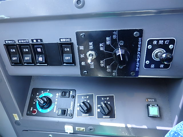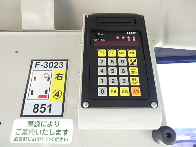 - ノンステップ式 路線バス仕様 前中扉 バリアフリー適合 シフト・AT(アイシン製) LED方向幕・3方向(LECIP製) 放送装置・取り外し済 車椅子用スロープ板装備 ニーリング装置 降車ボタン LED降車灯 車外照射灯 エアコン・DENSO製 ヒーター・温水循環式 タイヤ状態:夏用・縦溝スタイヤ・50%・6本 塗装状態:旧事業者・指定色・現状