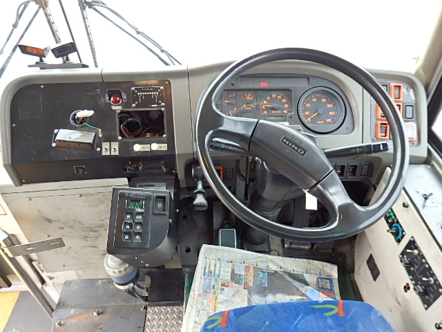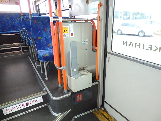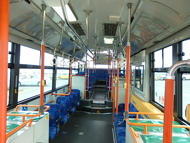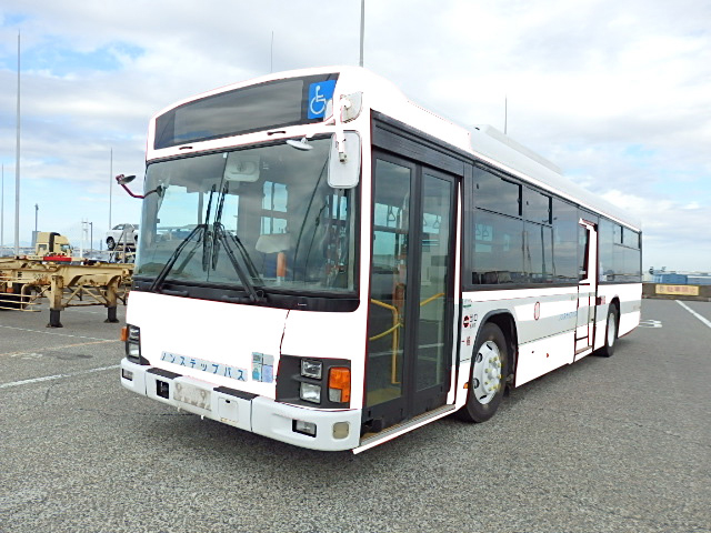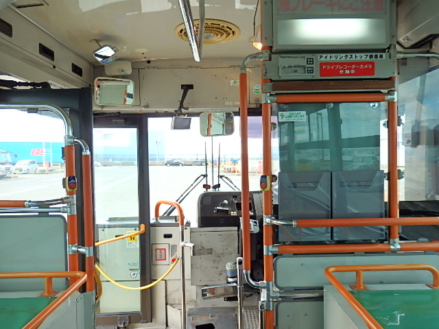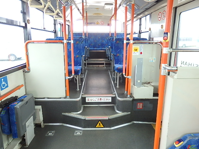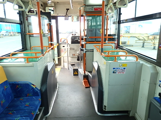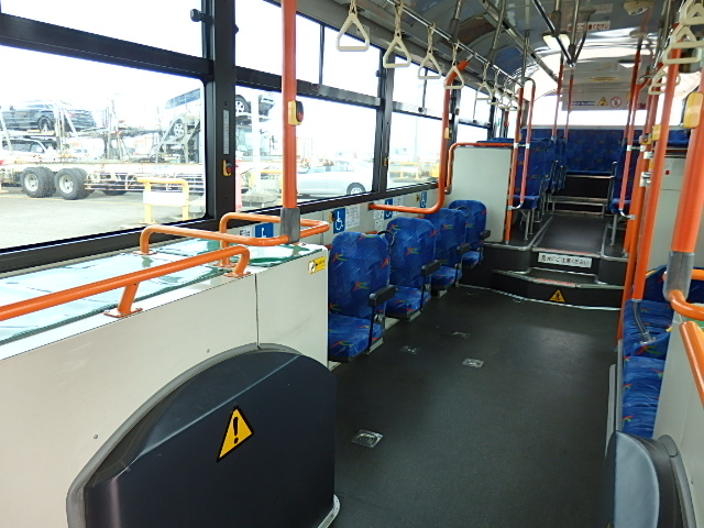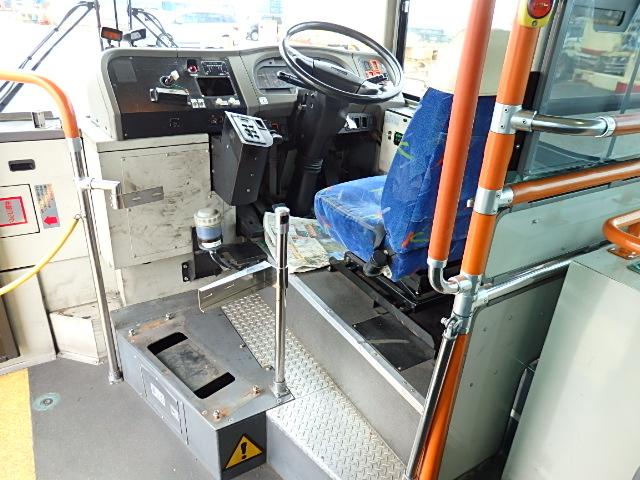 ノンステップ式 路線バス仕様 前中扉 バリアフリー適合 シフト・AT(アリソン製) LED方向幕・3方向(LECIP製) 放送装置・取り外し済  車椅子用スロープ板装備 ニーリング装置 降車ボタン LED降車灯 車外照射灯 エアコン・DENSO製 ヒーター・温水循環式 タイヤ状態:夏用・縦溝スタイヤ・10%・6本 塗装状態:旧事業者・大手路線事業者・指定色・現状(塗装変更条件)