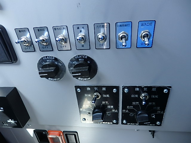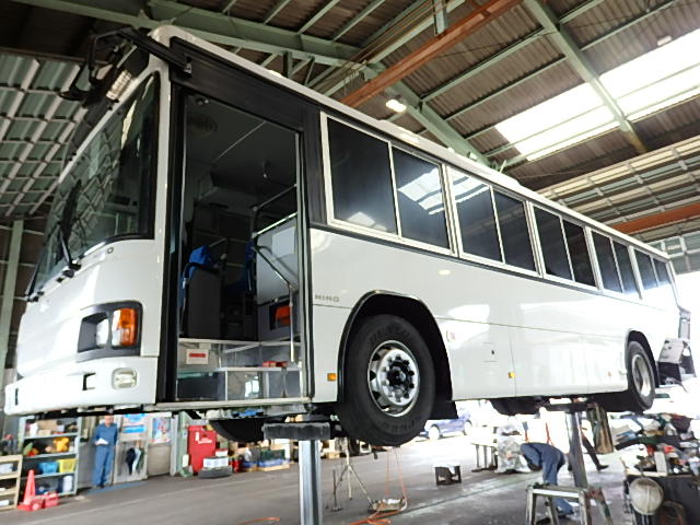 - 送迎仕様 TOP扉 シフト・6MT 12列シート 定員・83名*(正座席・49名+補助席・なし+D席・1名+立席・33名) モケット・ハイバック・固定シート シートレイアウト*(2人掛け×2人掛け・補助席なし) エアコン・直結式(DENSO製) ヒーター・温水循環式 マイク機能付・ラジオアンプ バックアイカメラ・カラー液晶モニター タイヤ状態・