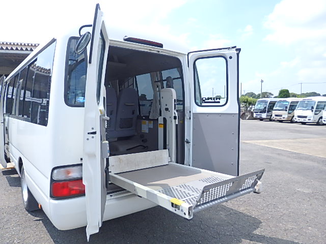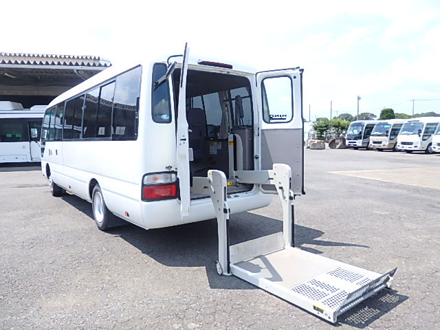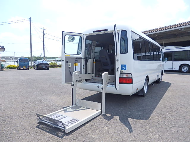 - 特別支援学校及び福祉施設向け・送迎仕様 車椅子用昇降リフト装着(トヨタ自動車・新車純正装着)LX AT 24名乗り*(正座席・15名+補助席・6名+D席・1名+車椅子・2基) ハイバック・モケットシート*(ビニールカバー装着)自動扉・スイング式 電動式・補助ステップ装着 直結式エアコン(DENSO製) ヒーター・温水循環式 ナビゲーション*(バックアイカメラ機能付) タイヤ状態・夏用ラジアルタイヤ・6本・10% * 塗装状態:新車時・純正色*(白色+ベージュ・ツートン) *(ボディ磨き実施) *旧使用者・福祉施設(埼玉県)