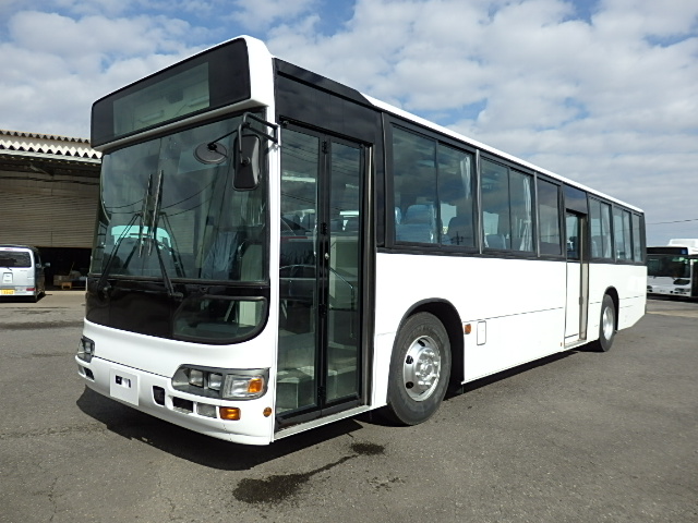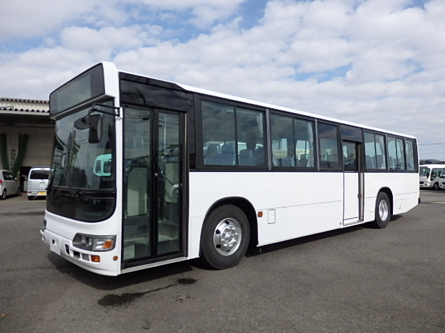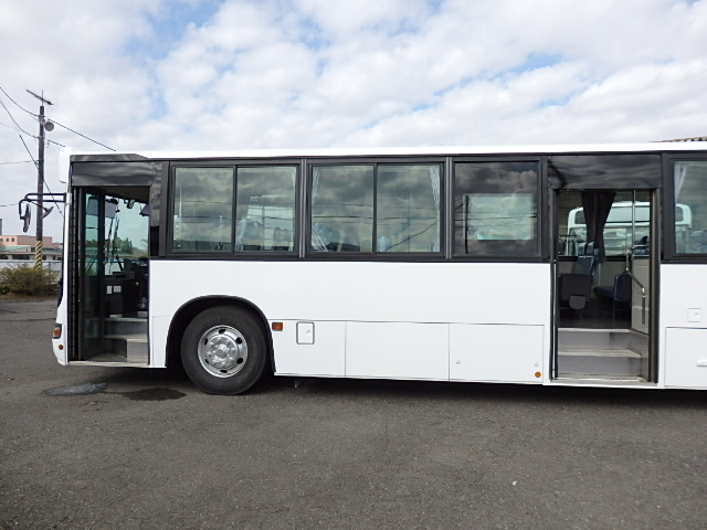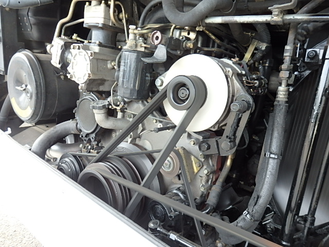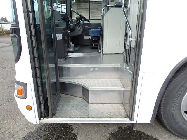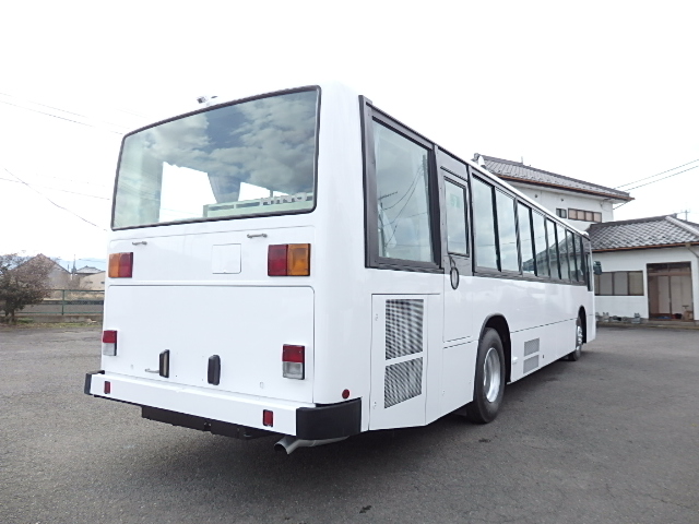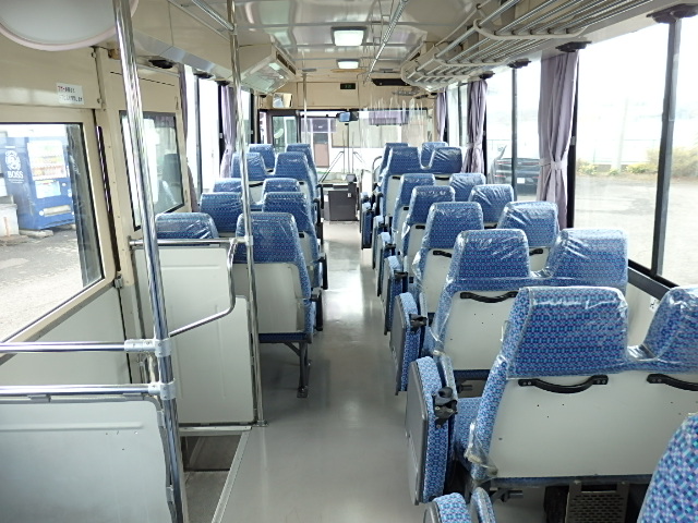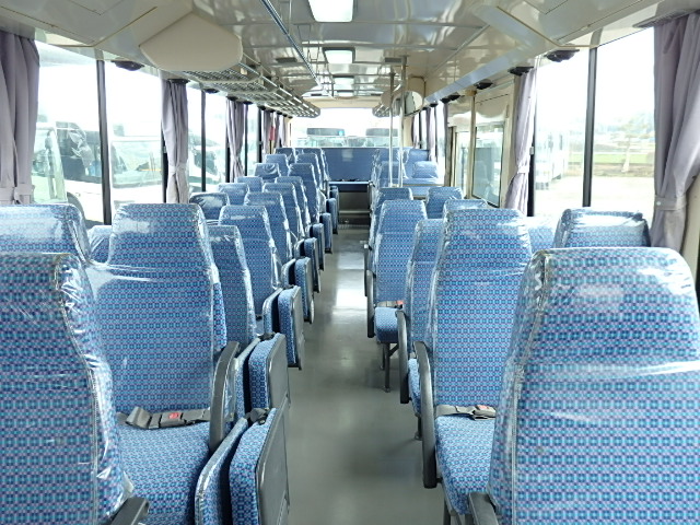 前中扉 シフト・5MT  定員・76名*(正座席・45名+補助席・11名+D席・1名+立席・19名) シートレイアウト*(2人掛け×2人掛け・補助席あり) エアコン・直結式(DENSO製) ヒーター・温水循環式 マイク機能付・ラジオアンプ バックアイカメラ・カラー液晶モニター タイヤ状態・MIXタイヤ・30% 塗装状態:全塗装施工実施済・白1色