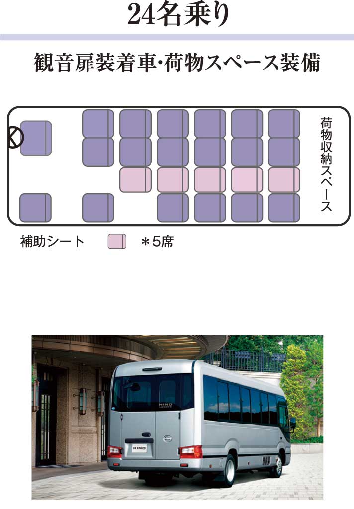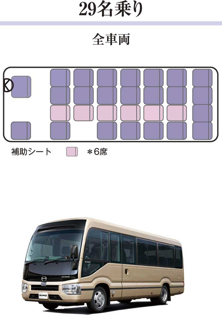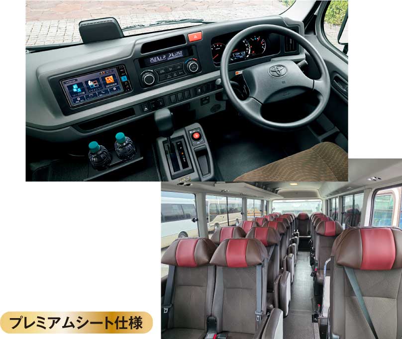 「トヨタ・コースター」「日野自動車・リエッセⅡ」最上級グレード・EX・29名乗りをご用意しております。*(一部車種・GXグレード)